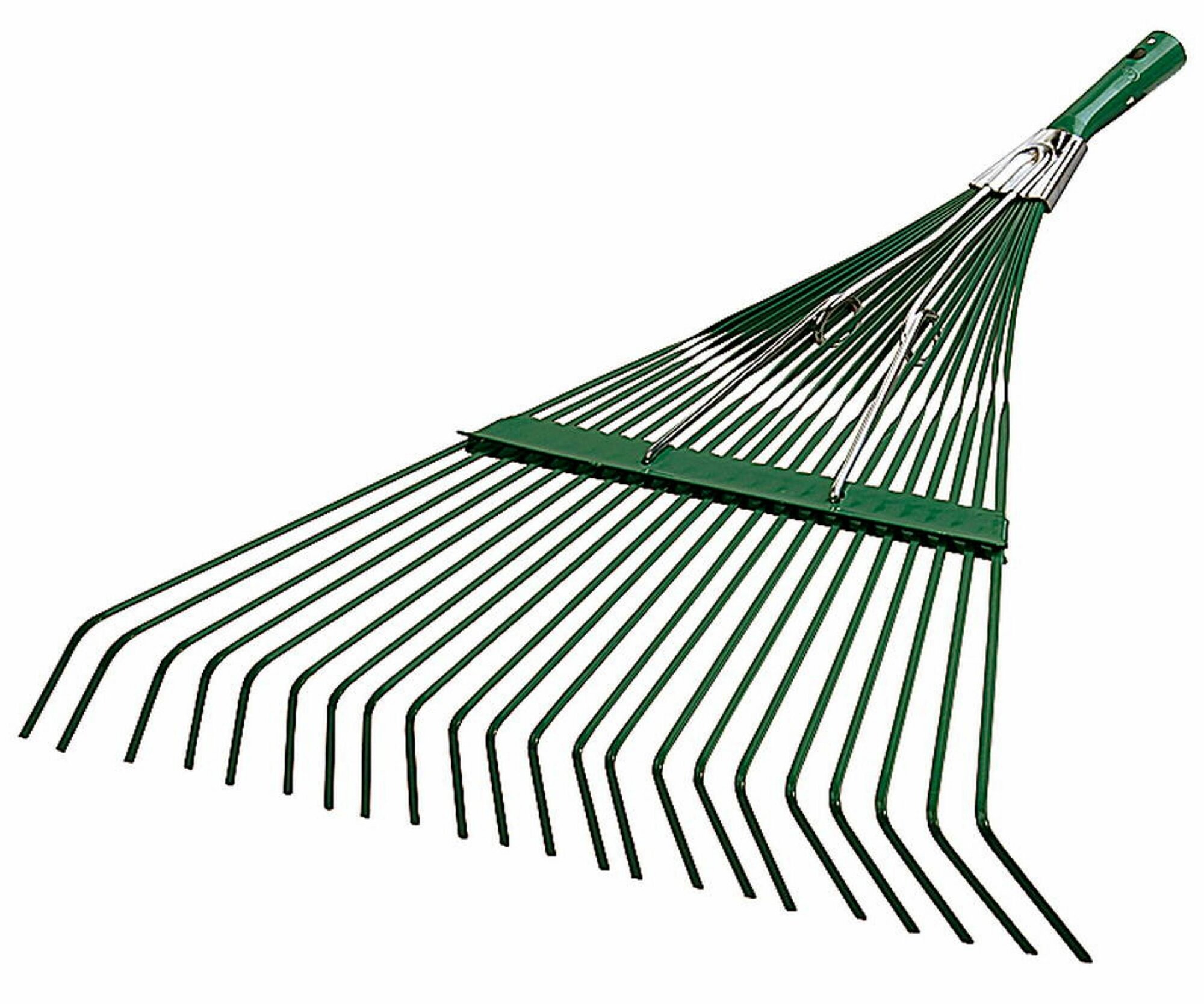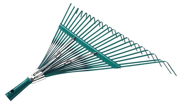 Грабли веерные RACO, 22 плоских окрашенных зубца ( ) Имеют 22 закаленных зубца плоского профиля из пружинной стали с эпоксидным покрытием. Оснащены специальной усиливающей поперечной пластиной. Ширина рабочей части: 550 мм. В качестве ручки использется черенок диаметром 25 мм. (в комплект не входит). Традиционные садовые грабли RACO являются незаменимым инвентарем в арсенале садовода. Применяются для очистки газонов от скошенной травы и листьев.