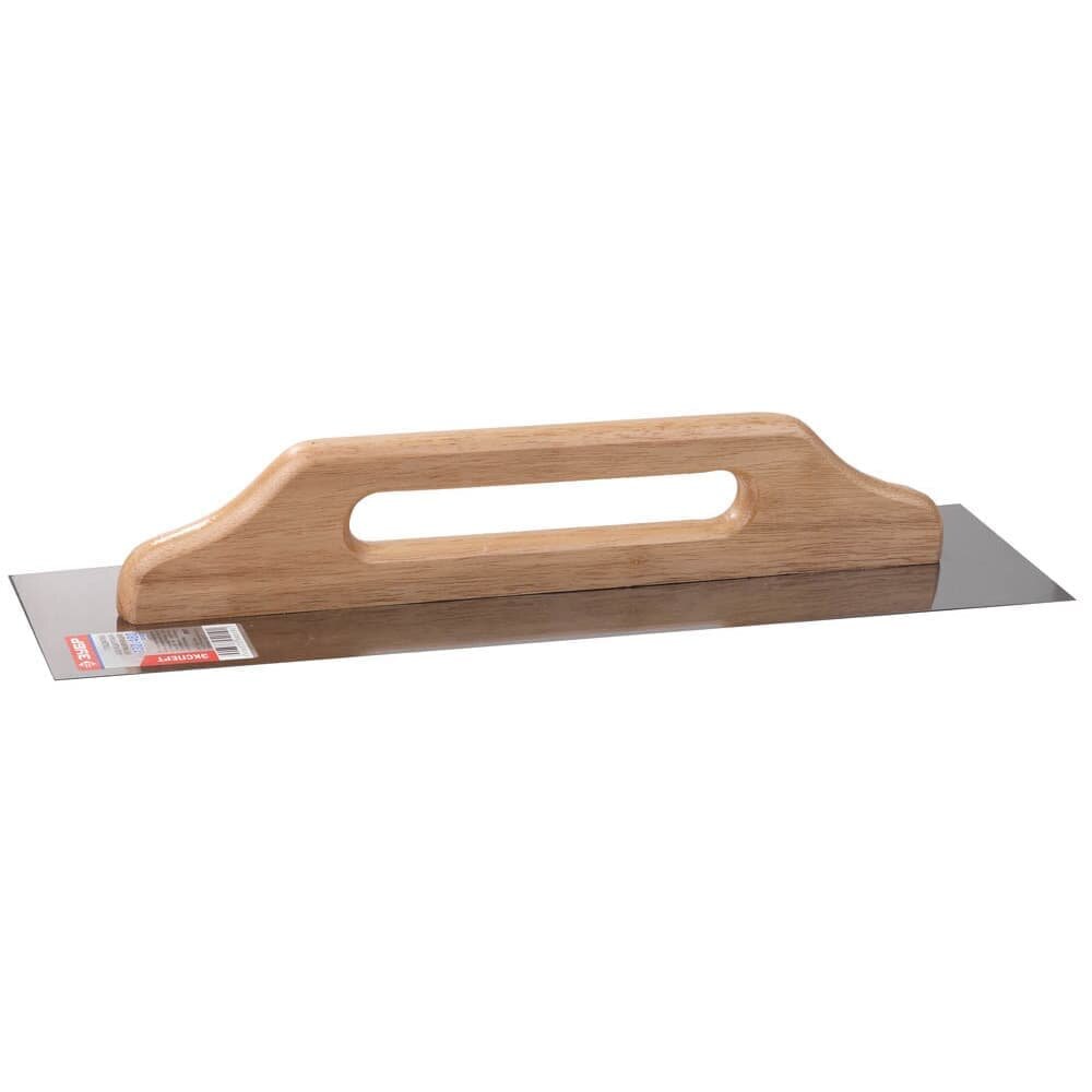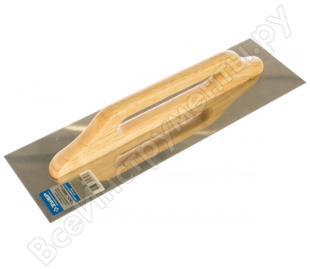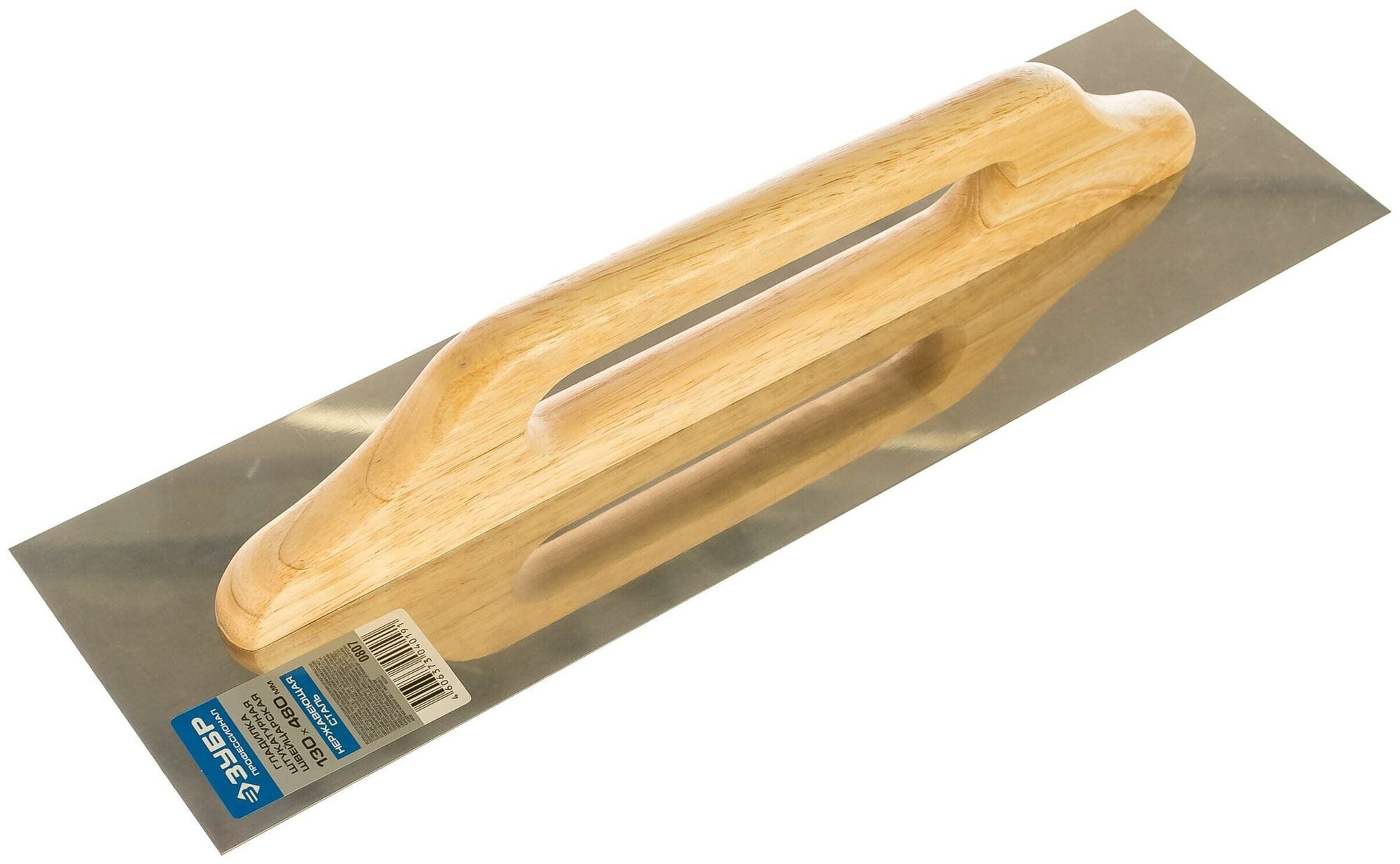Гладилка ЗУБР ''Швейцарская'' нержавеющая с деревянной ручкой, 130х480 мм состоит из полотна изготовленного из нержавеющей стали и эргономичной деревянной ручки. Используется для распределения и нанесения на большие поверхности клеевые растворы и штукатурные смеси.