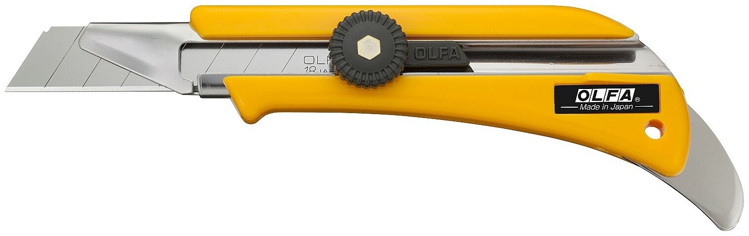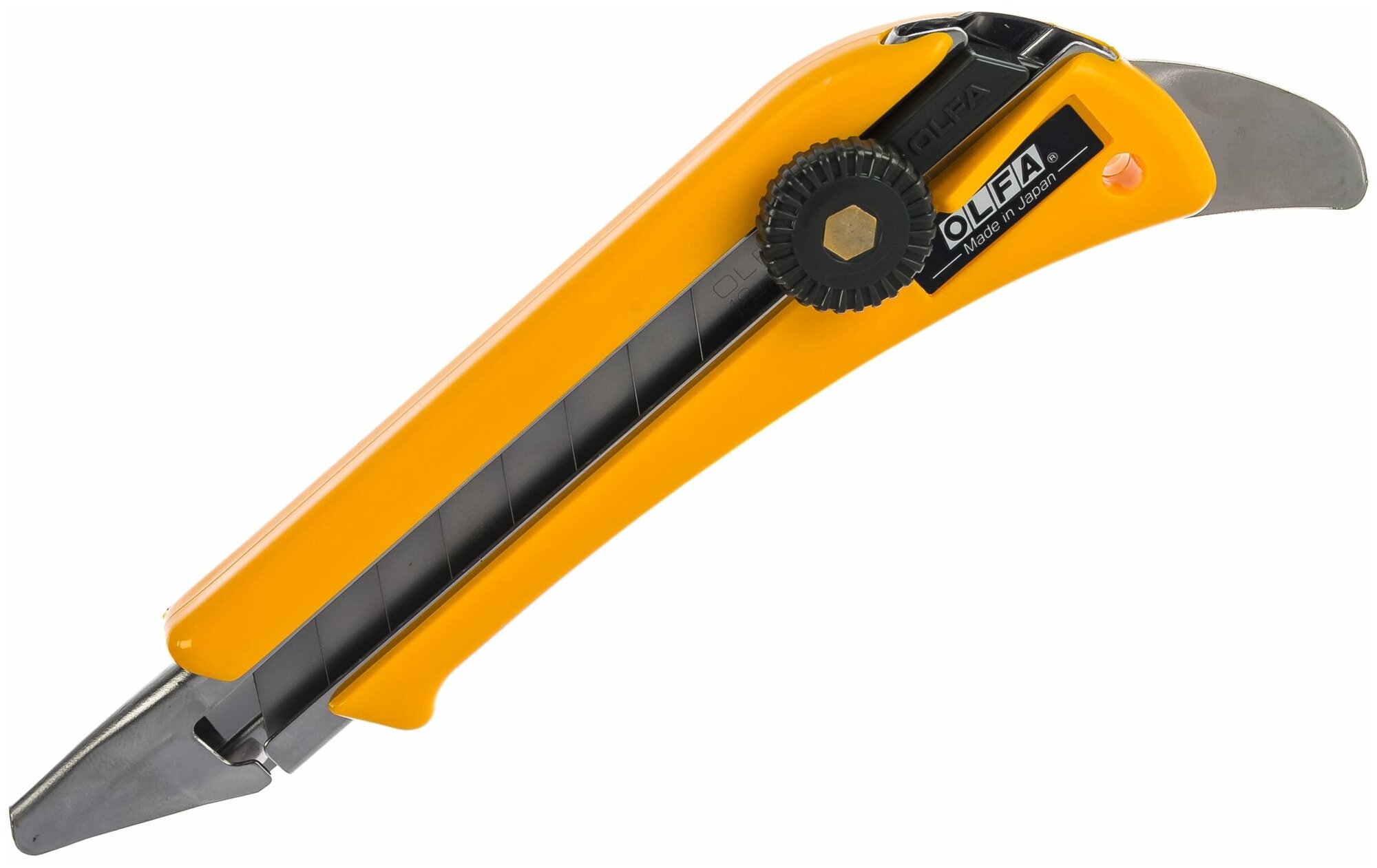 Высокопрочный нож OLFA (Олфа) используется для резки ковровых покрытий, потолочной плитки, картона, бумаги, пленки, линолеума и т.п.. Удлиненные направляющие используются для проведения реза на различную толщину. Имеется металлический заостренный выступ для многофункционального применения.