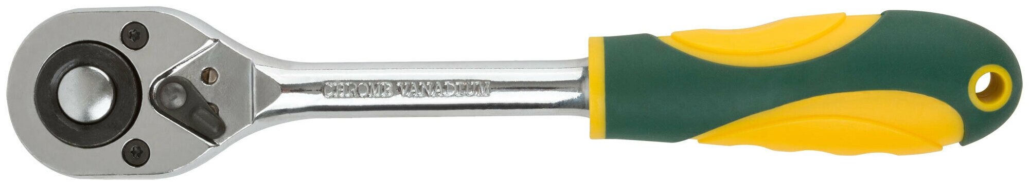Реверсивная трещотка Fit предназначена для работы с торцевыми головками при монтаже/демонтаже или ремонте различных конструкций. Изделие обладает высоким запасом прочности, так как полностью изготовлено из качественной инструментальной стали. Рукоятка изделия выполнена по форме ладони и обрезинена, что сводит к минимуму риск выскальзывания воротка из рук во время работы.