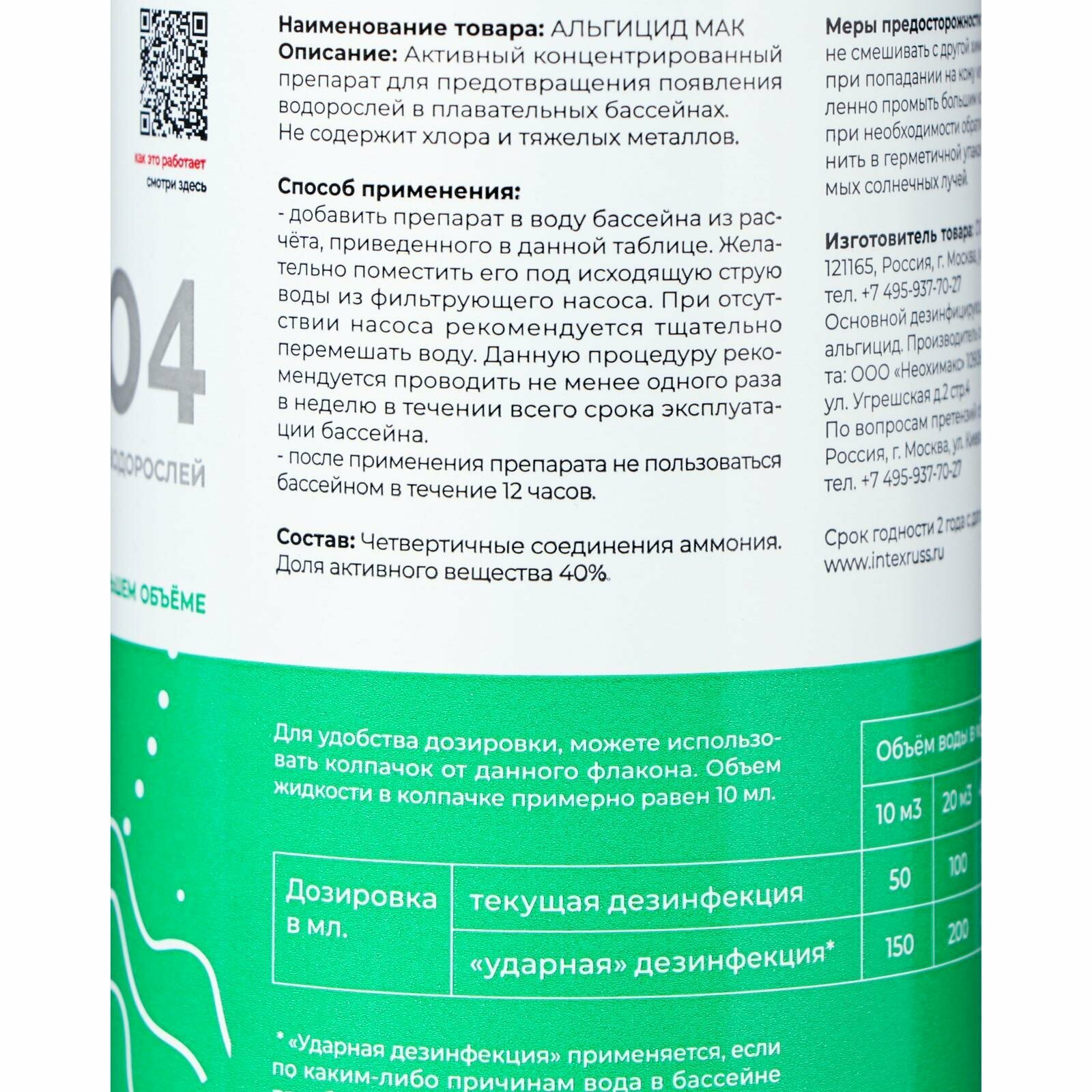 | Назначение | Дезинфекция детских бассейнов, дезинфекция семейных бассейнов, борьба с водорослями |