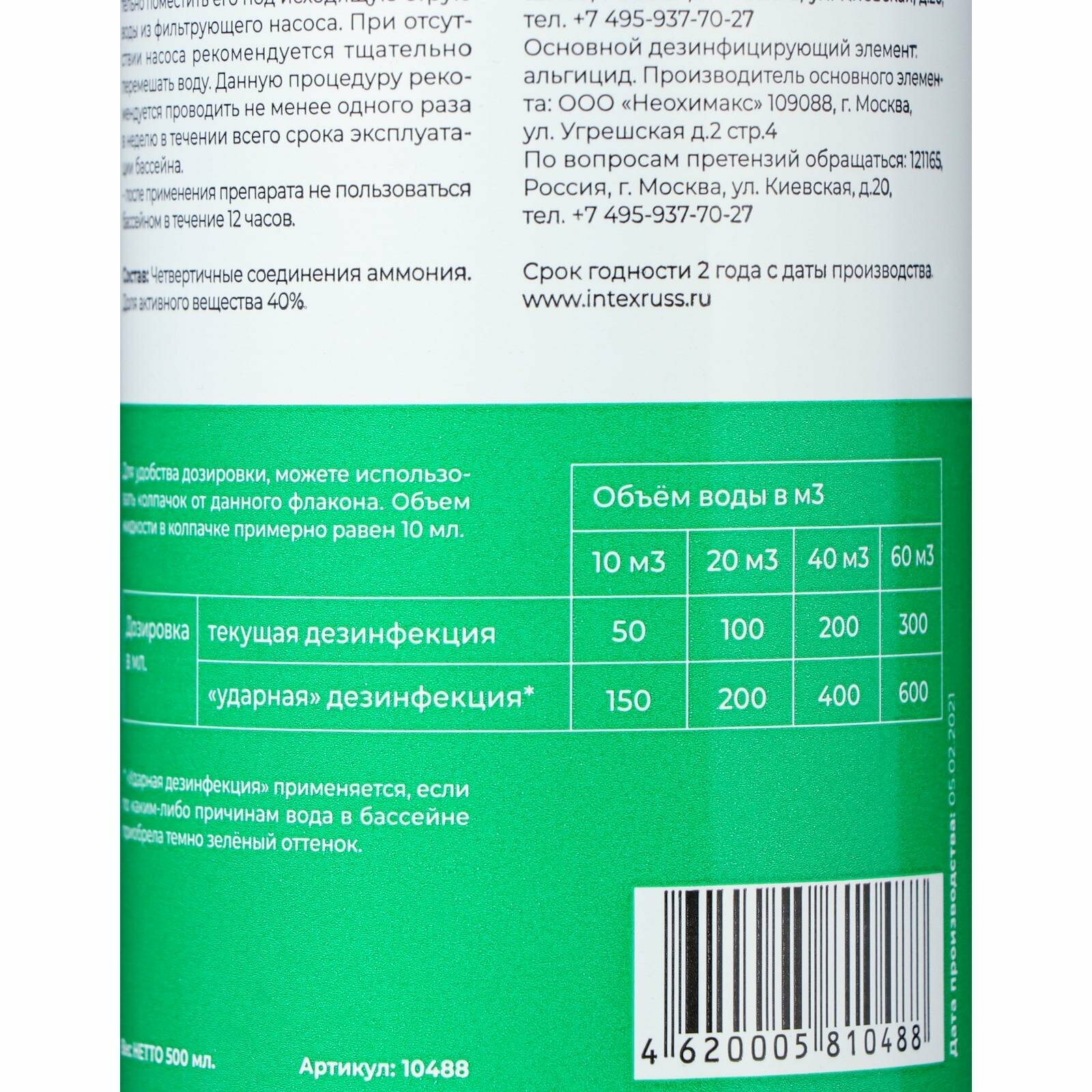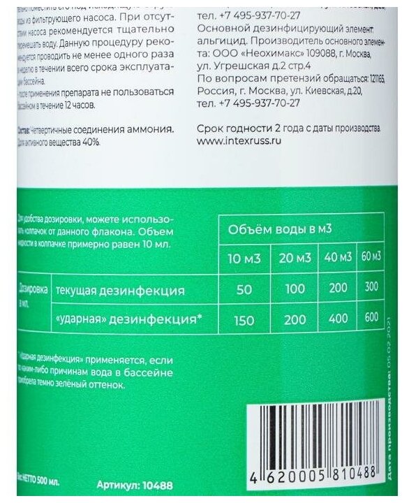 - При текущем дозировании на 100 кубических метров воды 0.5 литра препарата примерно каждые 2 недели.