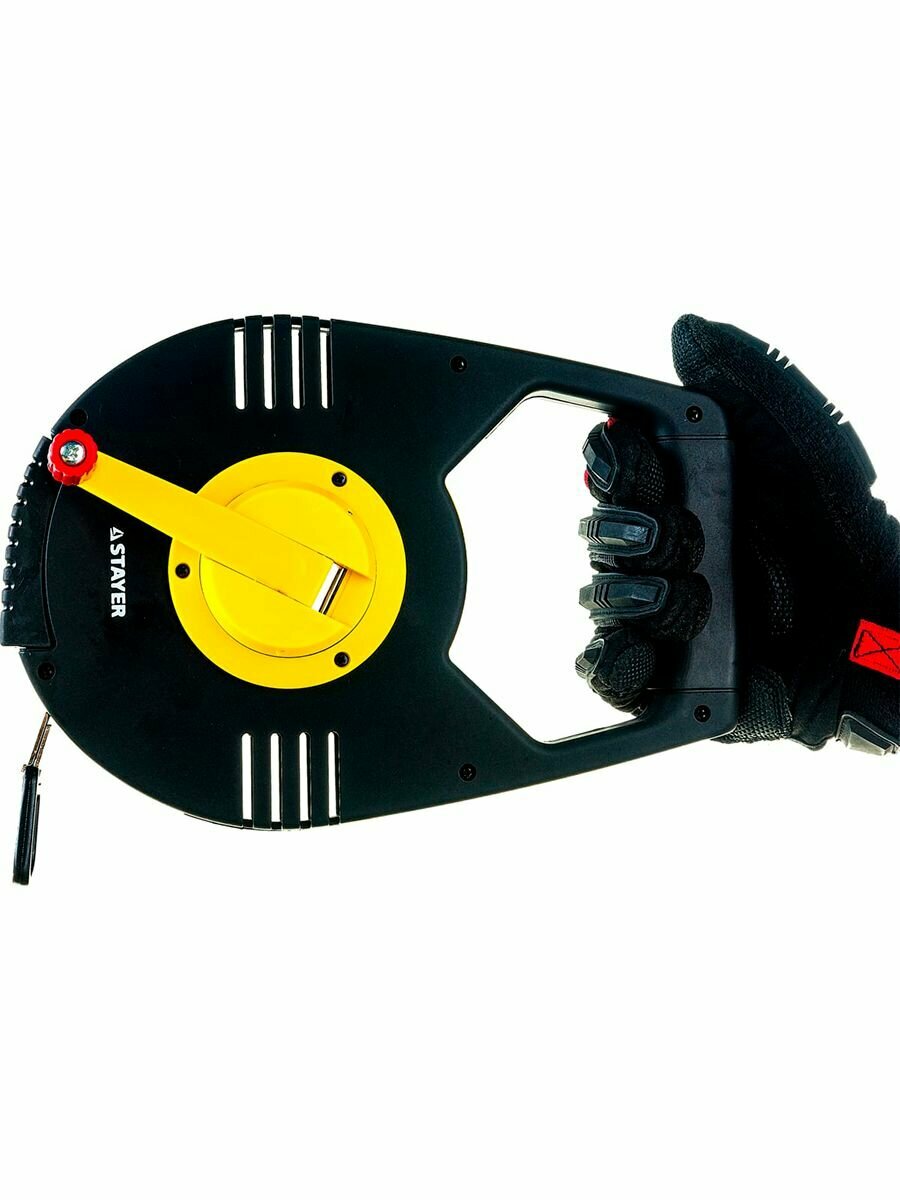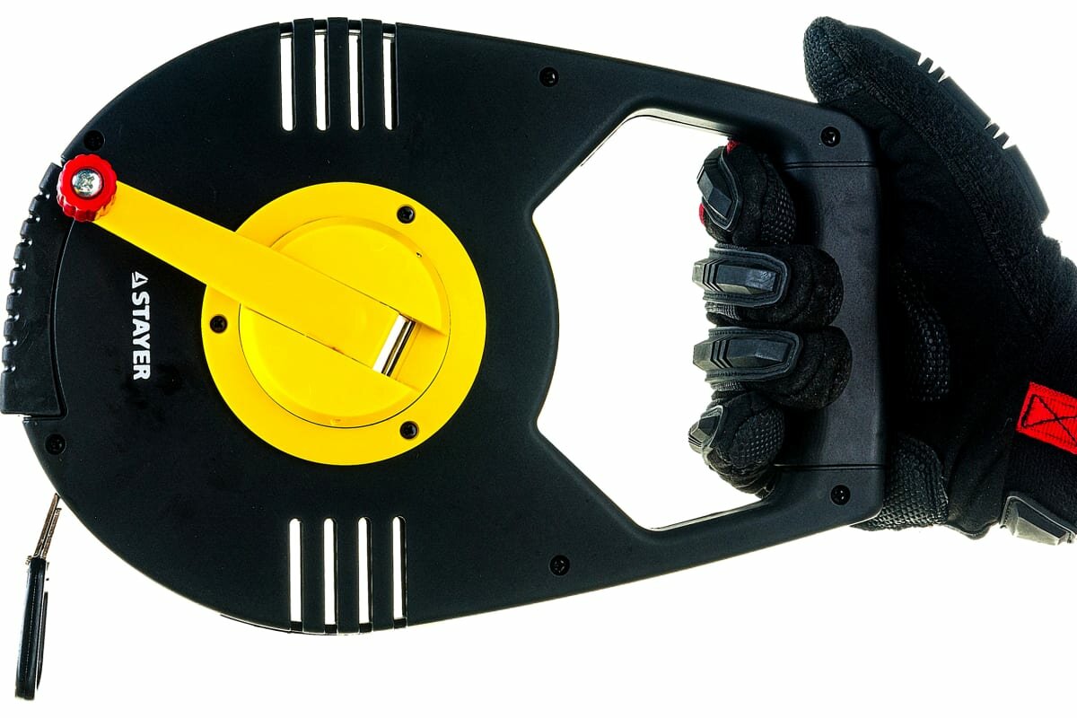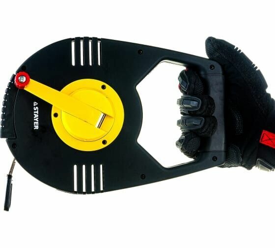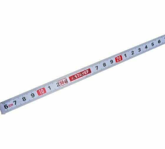 Профессиональные мерные ленты STAYER c усиленной конструкцией корпуса и защищенным от истирания металлическим полотном специально разработаны для проведения измерительных и разметочных работ Особенности и преимущества: Ускоренная смотка полотна благодаря редукторному механизму 3:1. Металлическое износостойкое полотно Ударозащищенный корпус Зацеп наконечника у точки отсчета. Магнитная фиксация полотна на корпусе. Противоскользящее покрытие рукоятки.