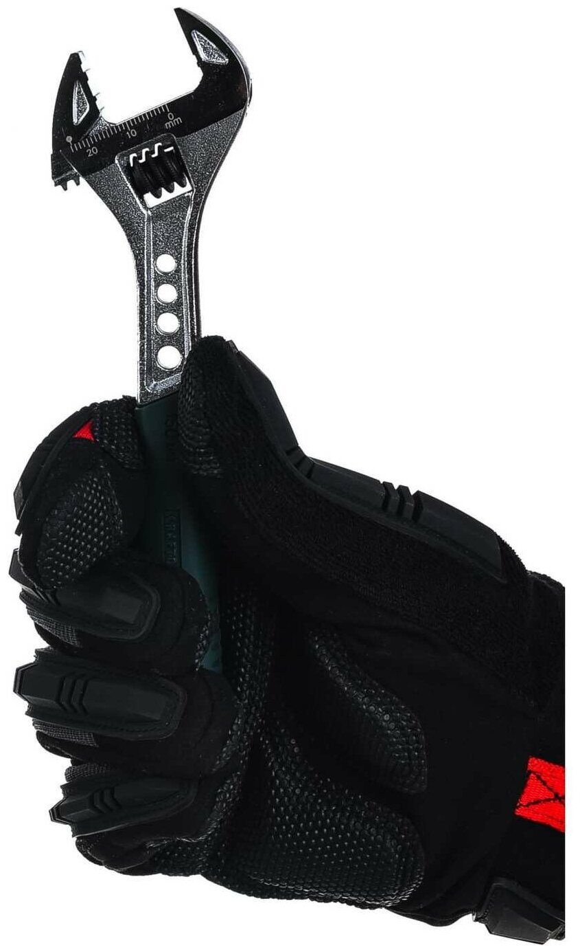 | Прочие особенности и свойства | Удобная рукоятка разводного ключа KRAFTOOL 27265-15 покрыта резиной - инструмент не скользит во время работы и хорошо лежит в руке. Для точности настройки ключа предусмотрена специальная шкала. Ребристая поверхность губок ключа обеспечивает неподвижную фиксацию крепежа |