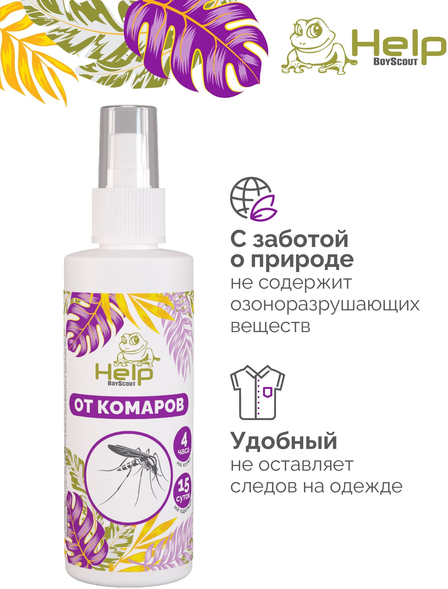 - Спрей-лосьон от комаров, репеллентный, 4 часа защиты, 200мл (Help) обзор 80512
