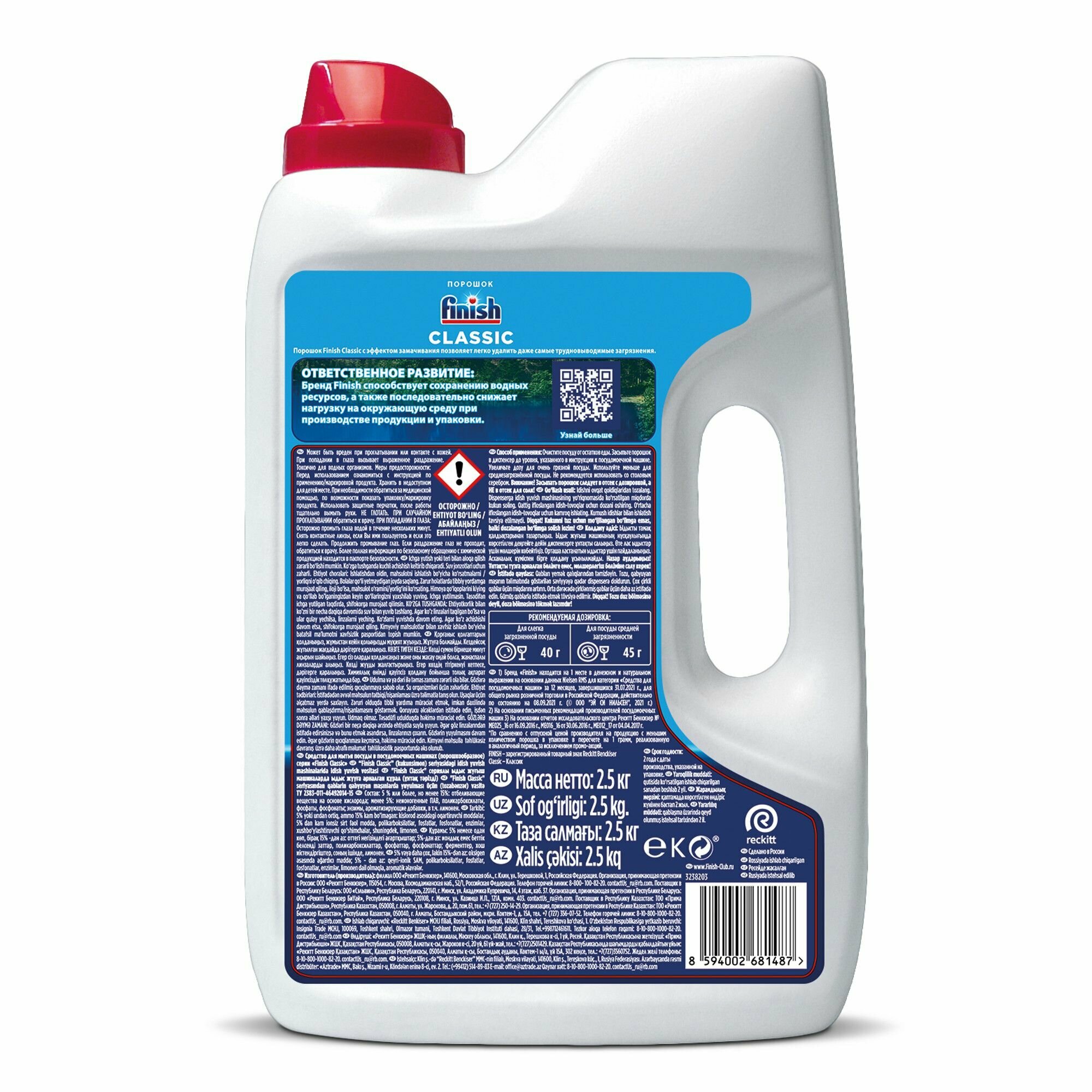 | Способ применения | засыпать необходимое количество порошка в соответствующий отсек посудомоечной машины |