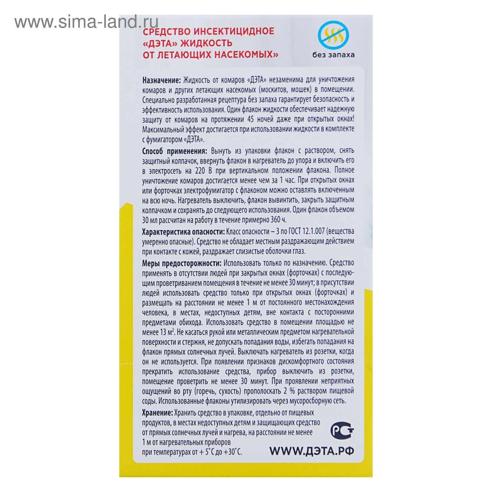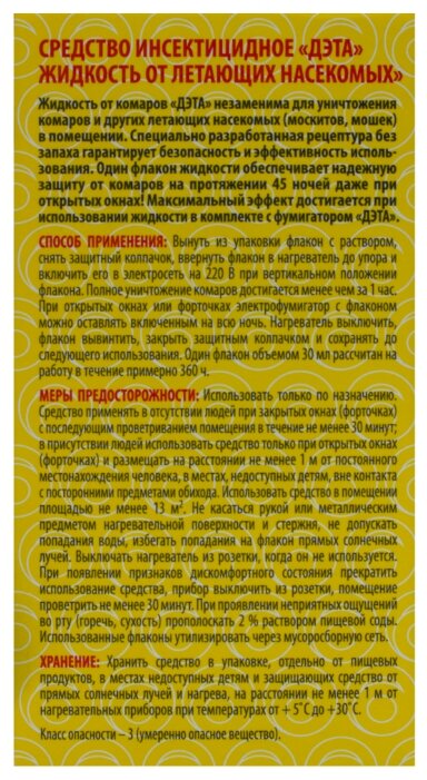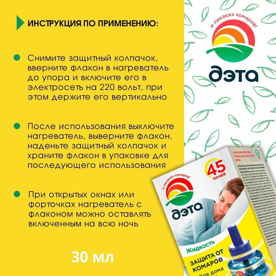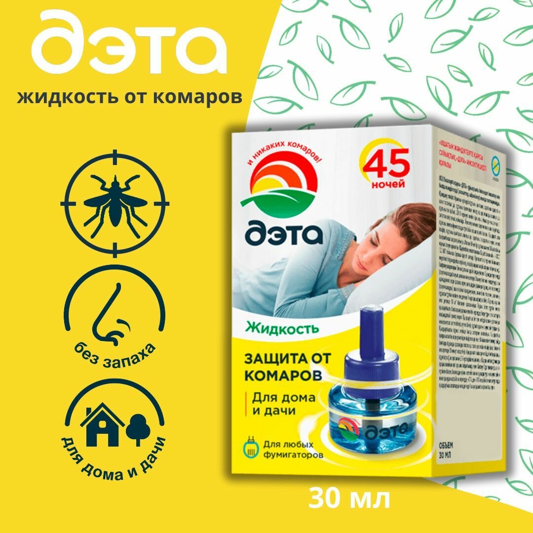 На сегодняшний день товар «Дэта Жидкость От Комаров 45 Ночей 30Мл Б/Запаха» можно купить с кешбеком в 1 магазине: Яндекс.Маркет