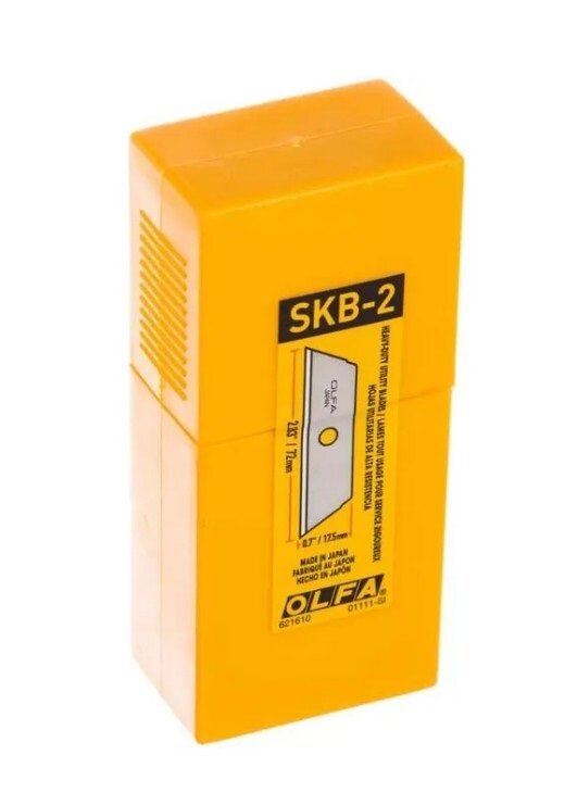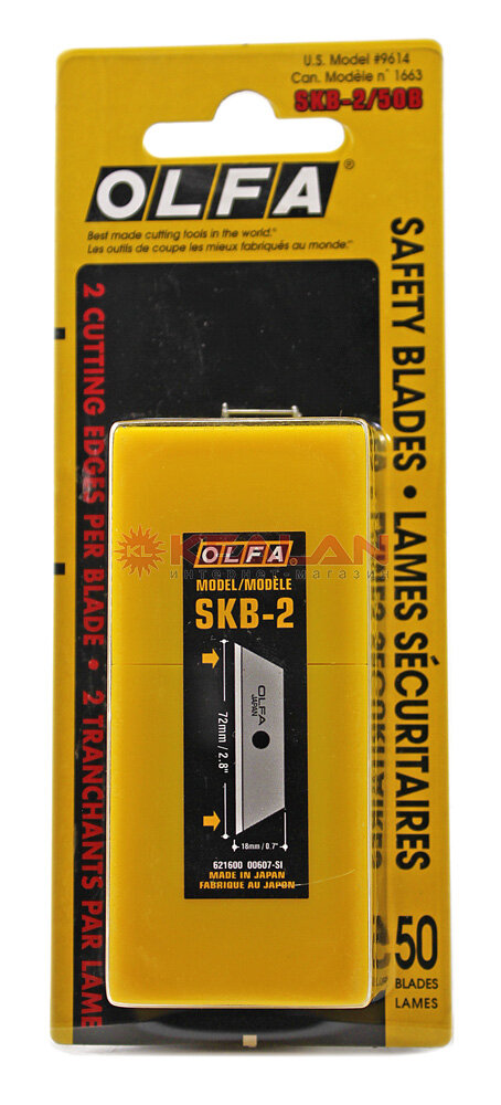 Лезвие OLFA (Олфа) это особо острое лезвие из углеродистой инструментальной стали, трапециевидной формы, с двойным углом заточки. Лезвие используется в ножах OLFA: OL SK-4, OL SK-5, OL UTC-1. Данные лезвия применяются для резки картона, гофрокартона, резины, бумаги, кожи и т.п. Поставляется по 50 лезвий в комплекте.