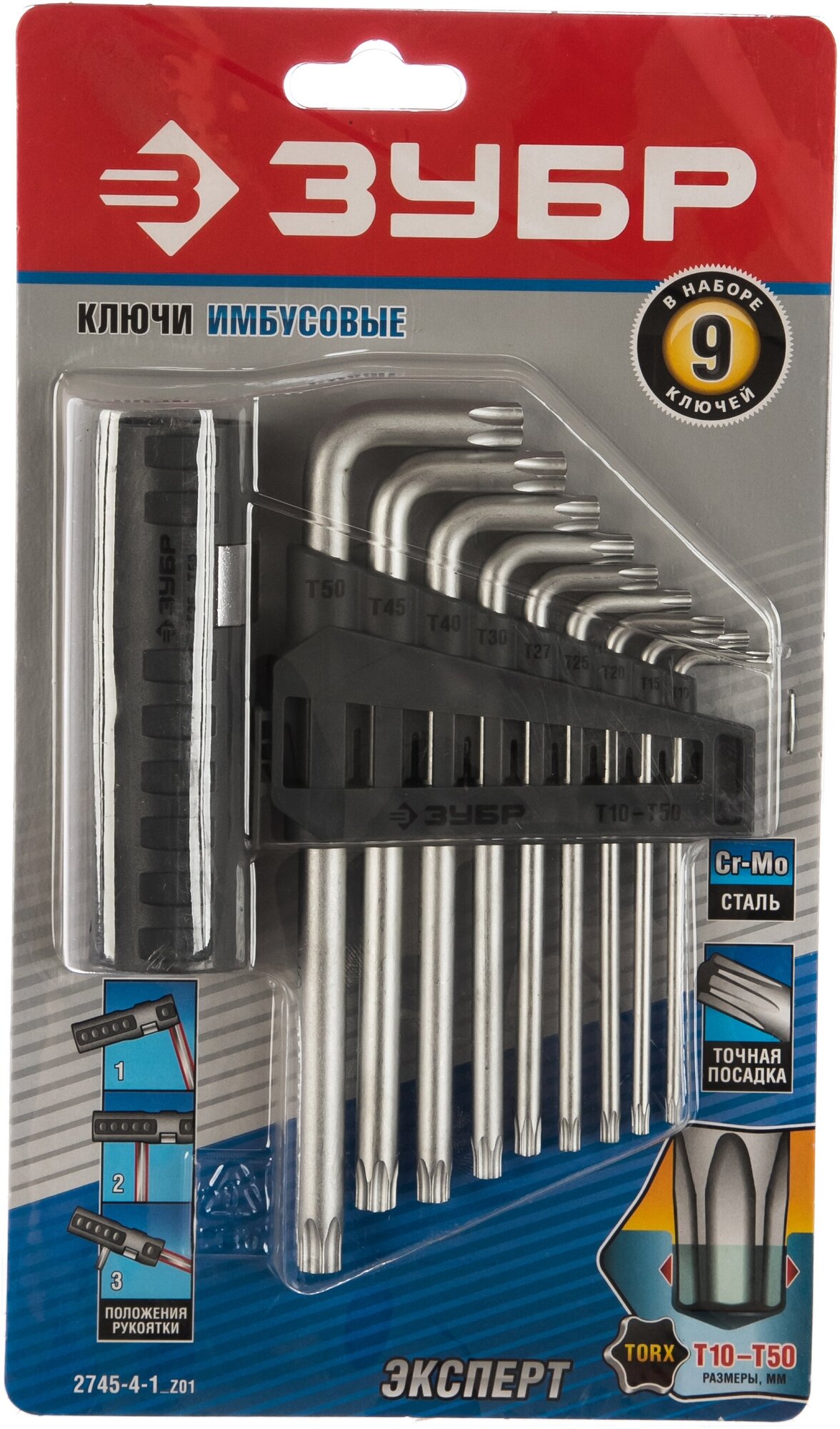 Набор ключей ЗУБР эксперт длин.с шариком cr-mo torx т10-т50 9 пред