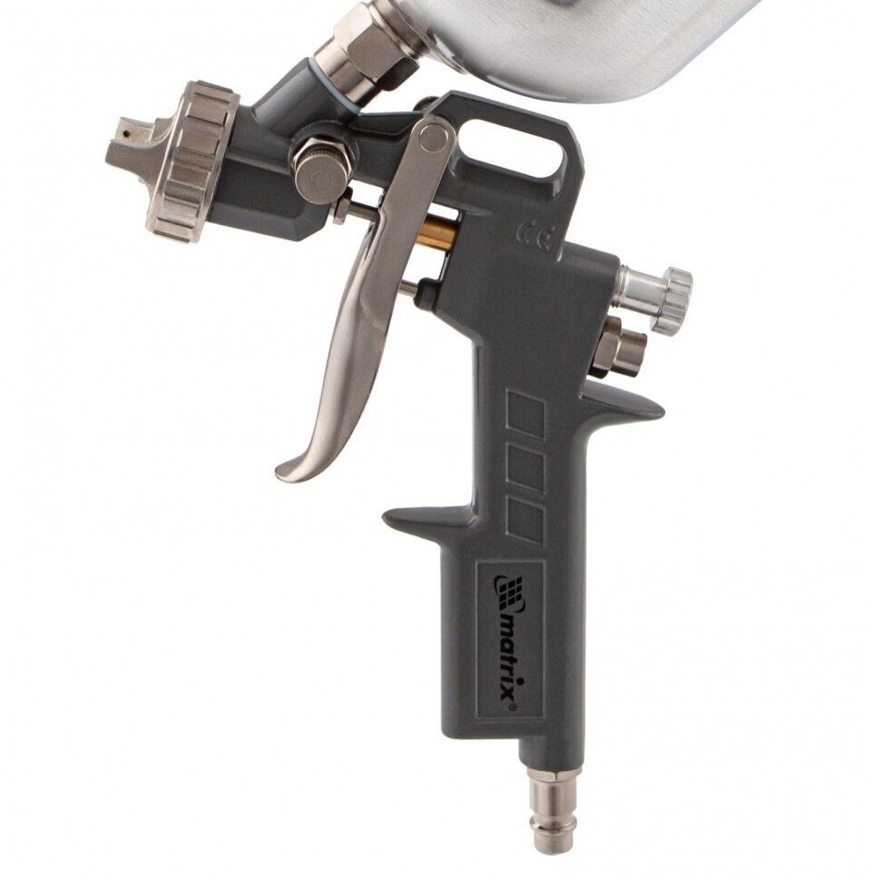 MATRIX – пневматический краскопульт для домашней мастерской. Подходит для нанесения краски, лаков, жидких резин, дезинфицирующих и защитных средств. Технология распыления HP. Объем бака 1 л для большого объема работ.