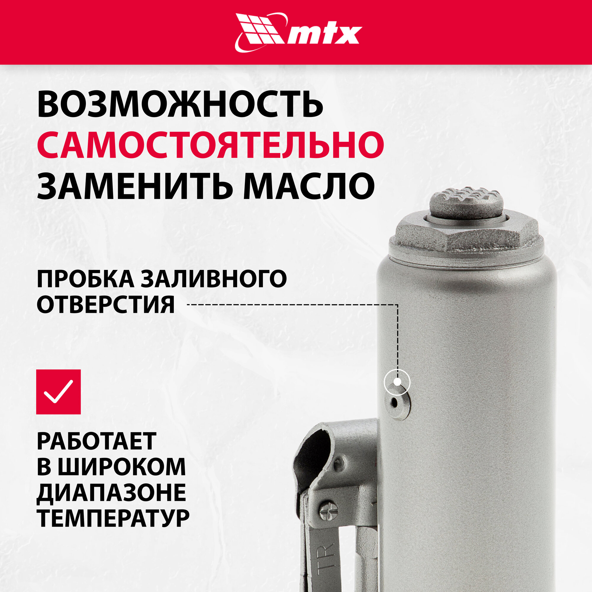| Особенности | морозостойкий; пошаговая регулировка подъема; предохранительный клапан от перегрузки |