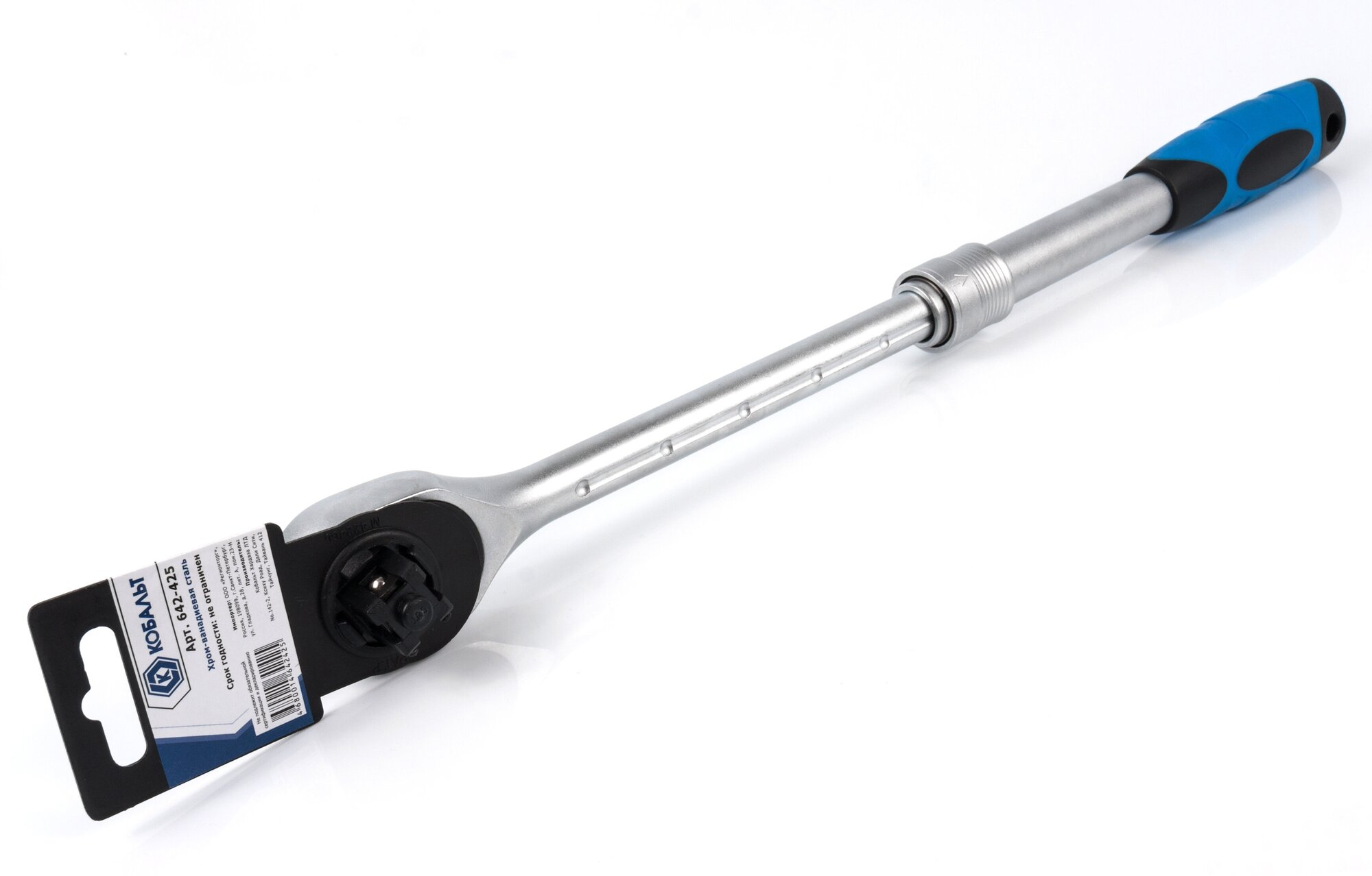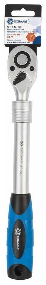 Трещоточная рукоятка телескопическая 305-445 мм с храповиком на 72 зуба, позволяет развивать высокий крутящий момент работе с минимальным углом поворота 5 град. Для головок с квадратом 1/2'. Флажковый переключатель реверса с фиксацией. Жесткое запирание головки на шпинделе шариком исключает возможность случайного выпадения головки в процессе работы. Храповик и собачки обслуживаемые и ремонтопригодные. Обрезиненая рукоятка повышает удобство и комфортность работы.