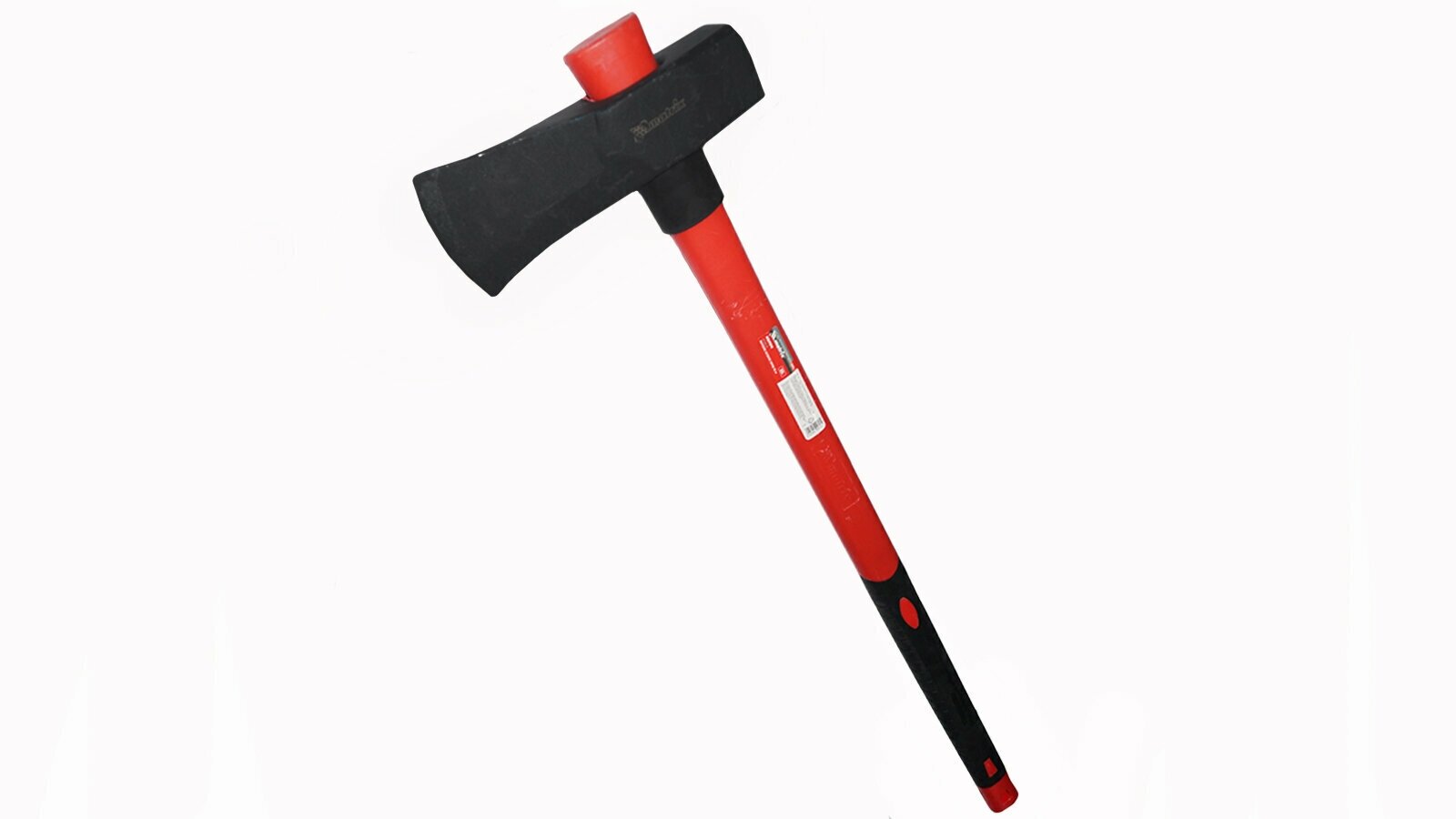 Большая сила удара — колун оснащен длинной рукояткой 900 мм, полотно весит 3,6 кг.