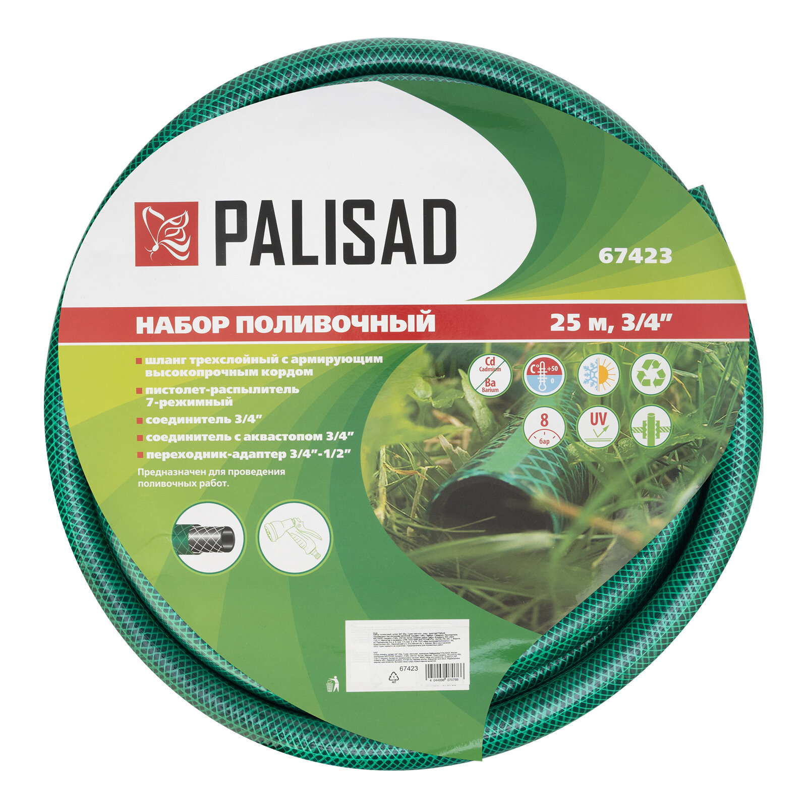Набор поливочный, шланг 3/4" 25м, 7-реж пистолет, соед., адаптер// Palisad