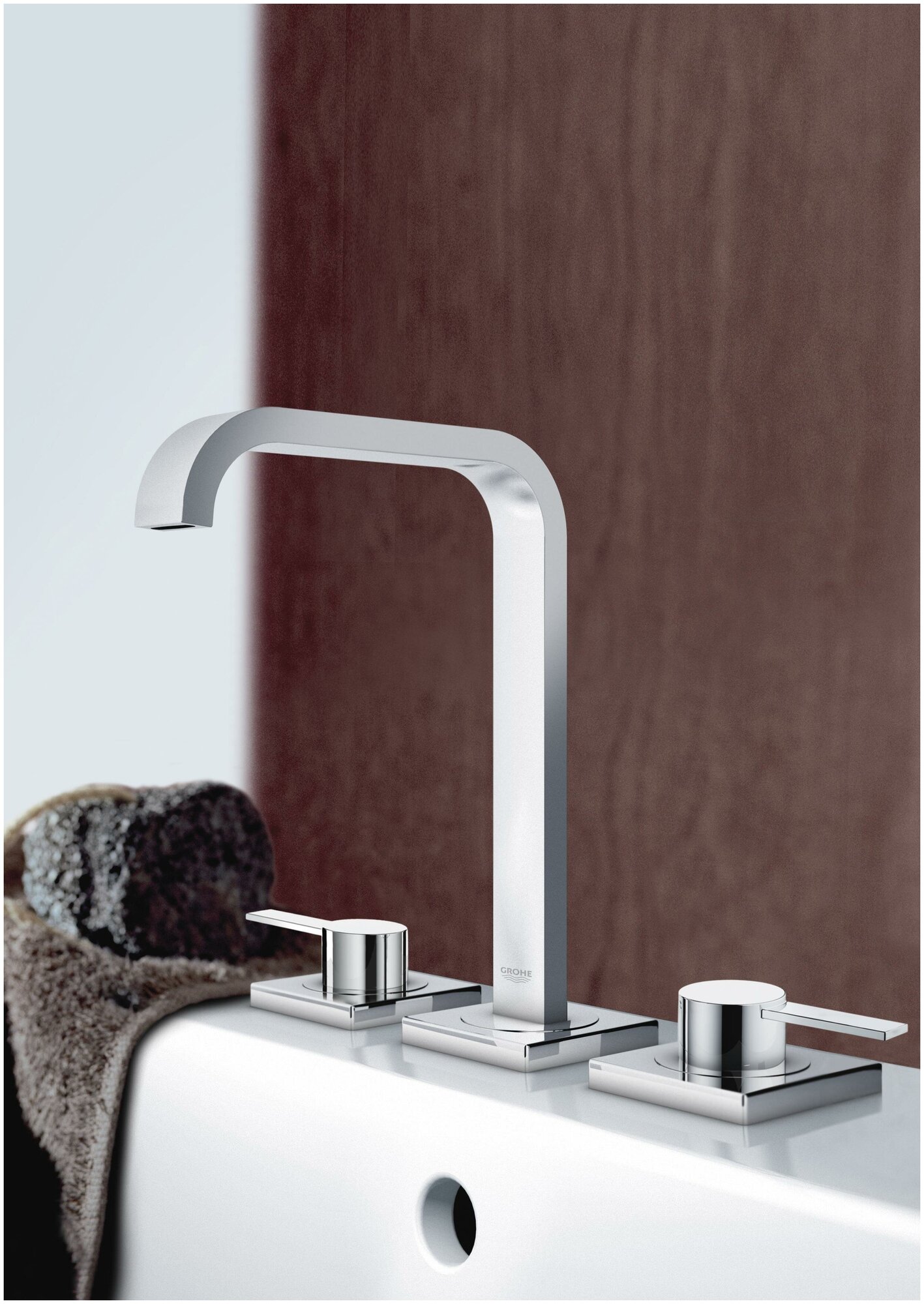 Смеситель для раковины Grohe Allure устанавливается на бортик или на столешницу под три отверстия. Благодаря современному дизайну и цвету хром, он может использоваться с чашами разного стиля и конфигурации. Модель включает в себя излив с аэратором, гибкую подводку, две ручки, керамические вентили, сливной гарнитур. Цвет хром. Есть гарантия.