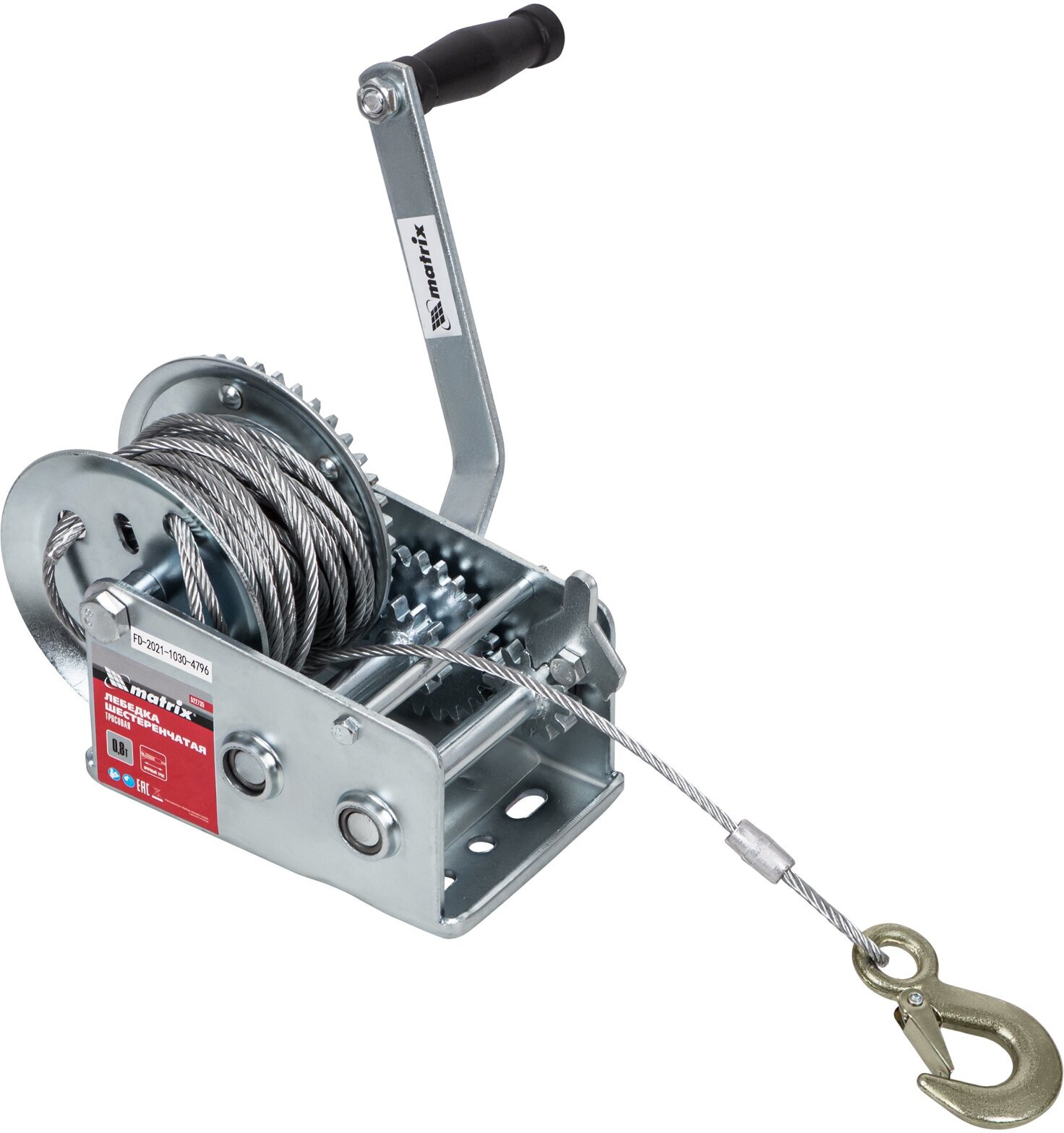 **Лебедка шестеренчатая Matrix** задействуется в работах по погрузке и разгрузке тяжелых товаров и материалов, при установке разного оборудования. Оснащена прочным стальным корпусом и шестеренчатым механизмом, приводящимся в движение вращением ручки. Используется только для горизонтального перемещения грузов.