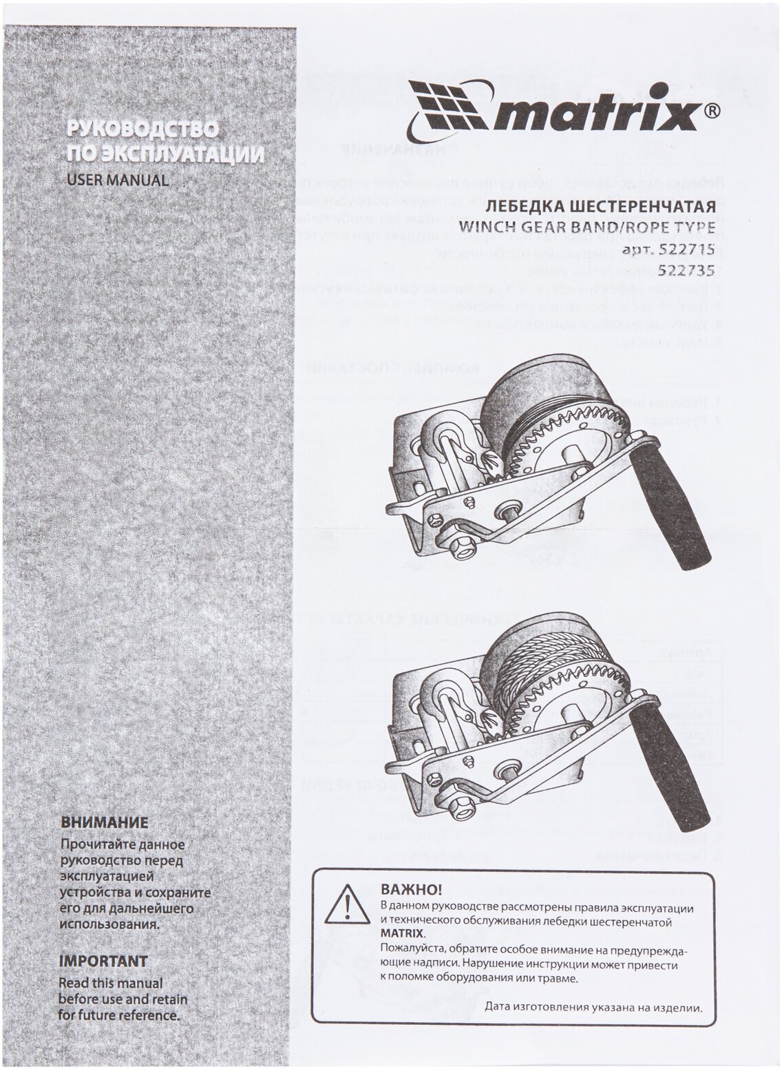 Шестеренчатая лебедка Matrix »