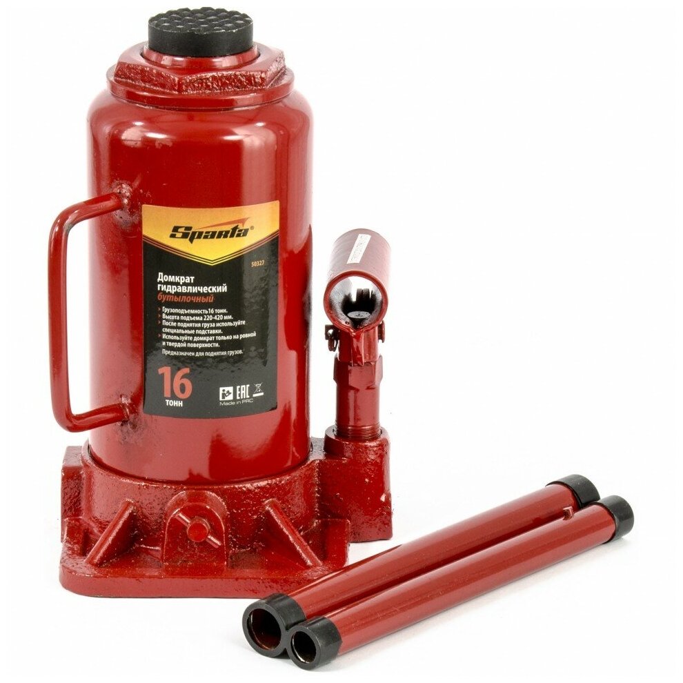 Гидравлический домкрат SPARTA предназначен для подъема груза массой до 16 тонн. Домкрат является незаменимым инструментом в автосервисе, часто используется при проведении ремонтно-строительных работ. Минимальная высота подхвата домкрата SPARTA составляет 22 см. Максимальная высота, на которую домкрат может поднять груз, составляет 42 см. Этой высоты достаточно для установки жесткой опоры под поднятый груз и проведения ремонтных работ.