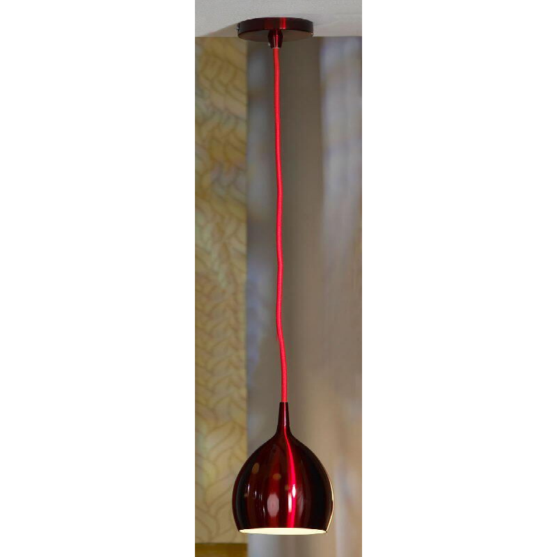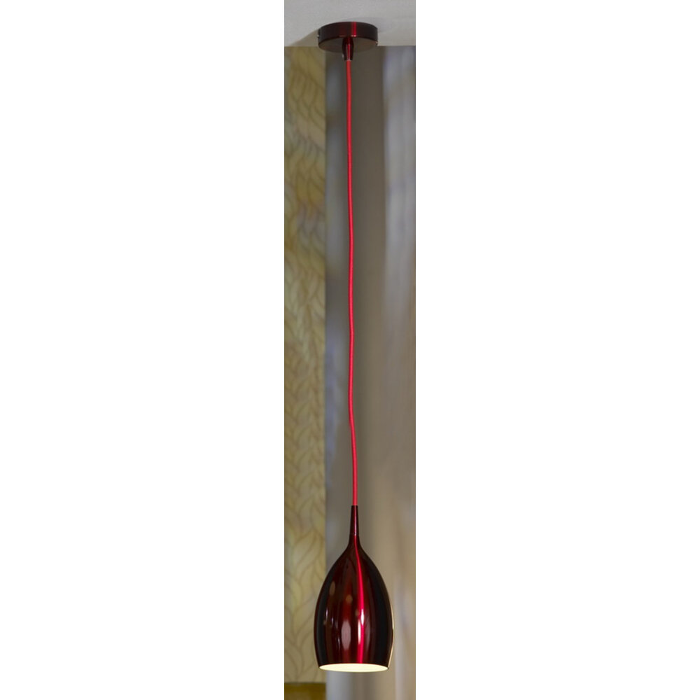 Подвесной светильник Lussole LOFT из коллекции Collina. В конструкции светильника используется один красный стеклянный плафон овальной формы и металлическая арматура цвета красный. Габаритные размеры светильника 1400x110 мм. Дизайн светильника отлично подходит для кухни. Устанавливается на потолок.