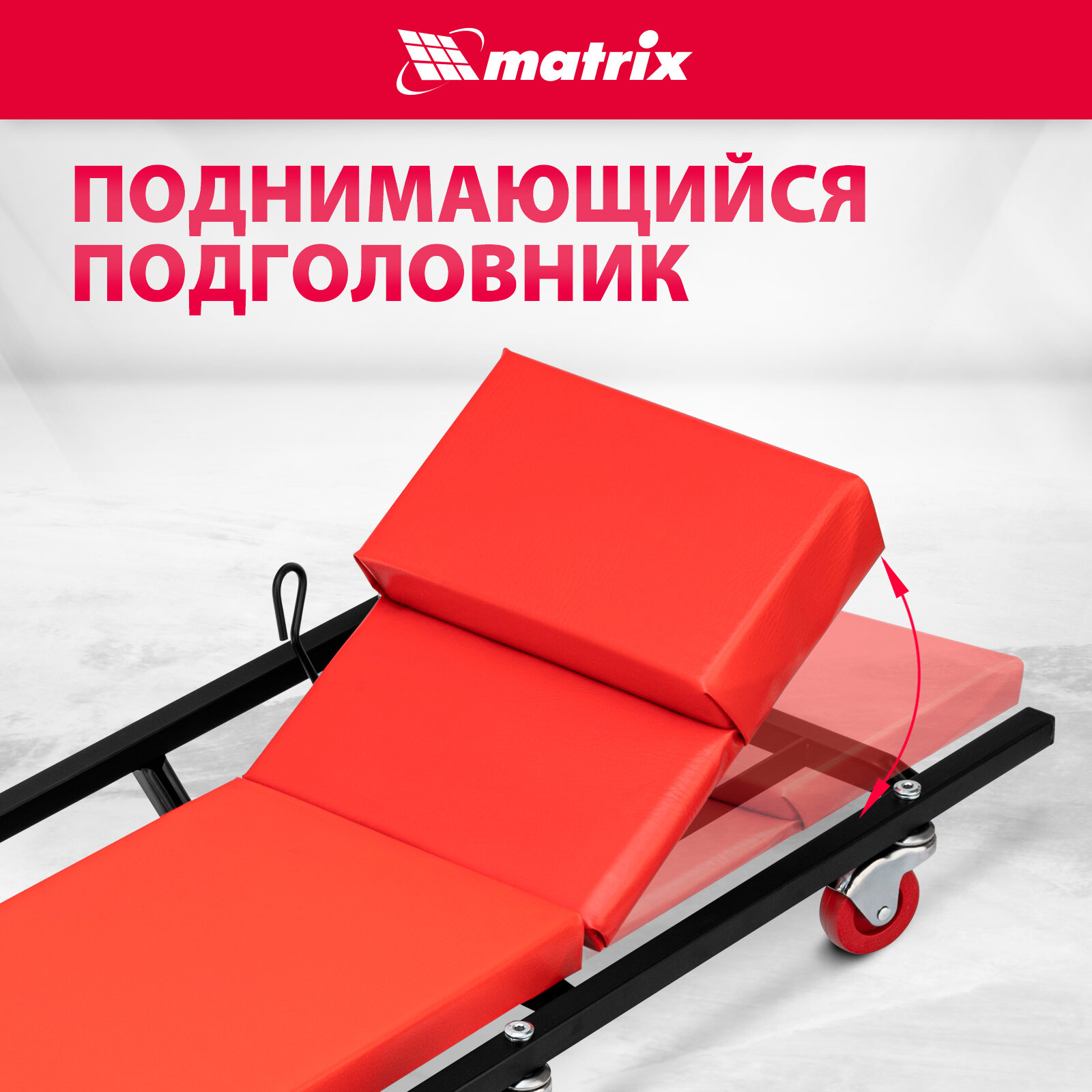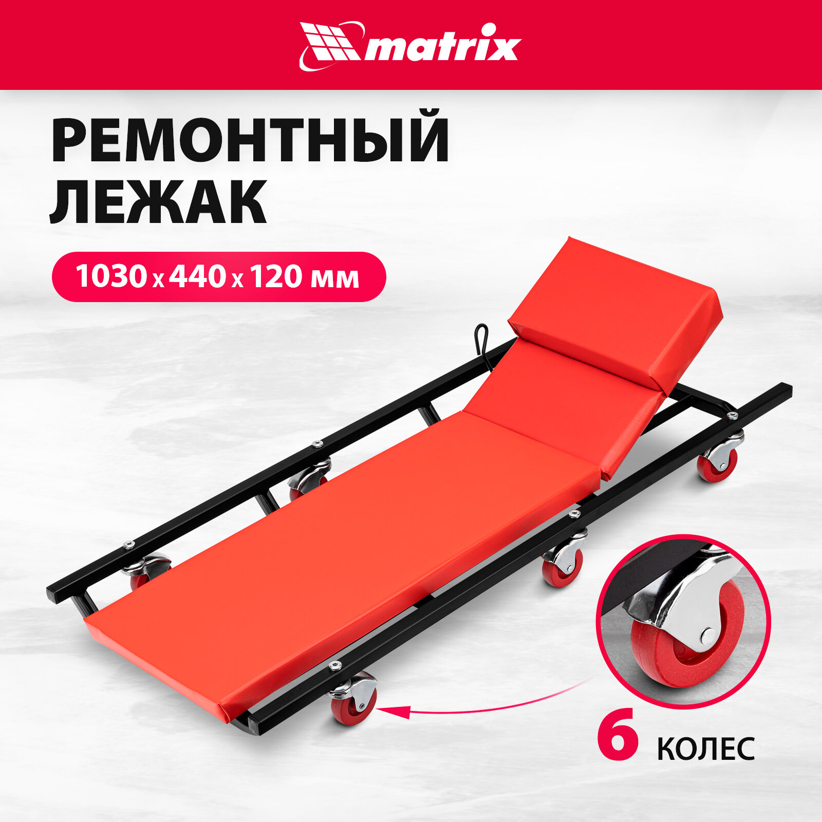 Лежак ремонтный на 6-ти колесах, 1030 х 440 х 120 мм, поднимающийся подголовник// Matrix