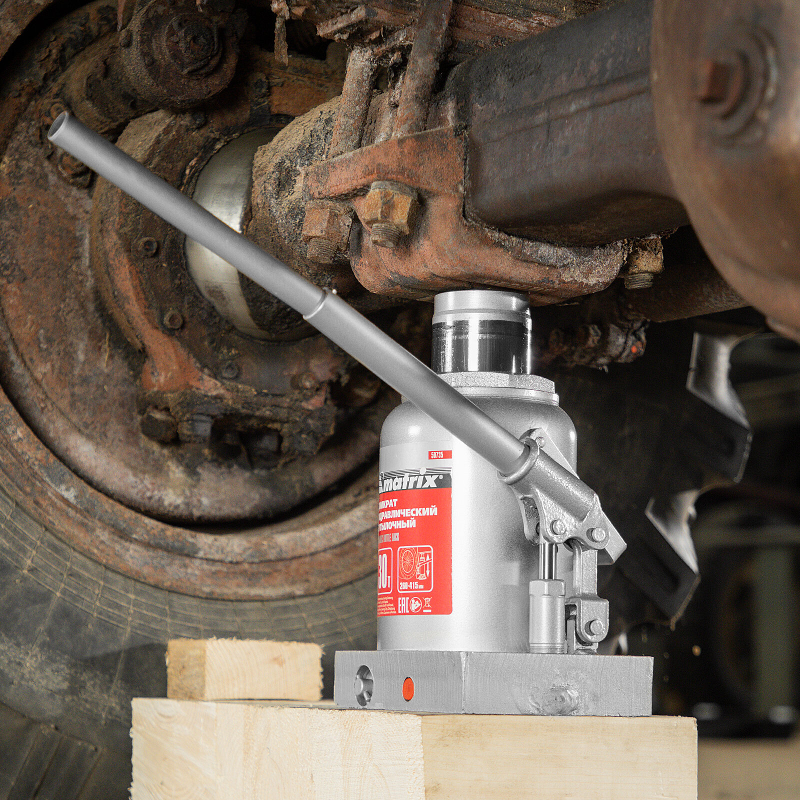 Домкрат является незаменимым инструментом в автосервисе, часто используется при проведении ремонтно-строительных работ.Гидравлический домкрат MATRIX MASTER с клапаном безопасности предназначен для подъема груза массой до 30 тонн.Минимальная высота подхвата домкрата MATRIX MASTER составляет 24 см.Максимальная высота, на которую домкрат может поднять груз, составляет 37 см.Этой высоты достаточно для установки жесткой опоры под поднятый груз и проведения ремонтных работ.Клапан безопасности предотвращает подъем груза, масса которого превышает массу заявленную производителем.ВНИМАНИЕ!Домкрат не предназначен для длительного поддерживания груза на весу либо для его перемещения. Перед подъемом убедитесь, что груз распределен равномерно по центру опорной поверхности домкрата.Масса поднимаемого груза не должна превышать массу, указанную производителем.Домкрат во время работы должен быть установлен на горизонтальной ровной и твердой поверхности.После поднятия груза необходимо использовать специальные стойки-подставки для его поддерживания.Запрещается производить любого вида работы под поднятым грузом при отсутствии поддерживающих его подставок.Перед началом работы ознакомьтесь с инструкцией по эксплуатации изделия.