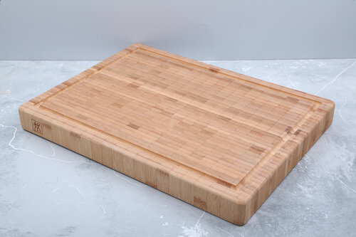 Бамбук –инновационный материал, идеально подходящий для разделочных досок благодаря своим антибактериальным свойствам. Разделочную доску можно использовать с обеих сторон для нарезки любых продуктов, а также для сервировки таких блюд как суши. Мыть губкой с тёплой водой и мягким моющим средством. Затем тщательно высушить. Избегайте экстремальных температур и высокой влажности. Особенности изделия: -Высокая твердость и износостойкость поверхности; -Не повреждает лезвия ножей; -Модный дизайн; -Восстанавливающийся материал.