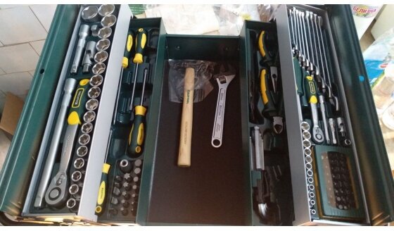 | Инструменты в комплекте | молоток, отвертки, рукоять для бит, трещотка, пассатижи, ножовка по металлу, ключи гаечные, кусачки, ключ разводной, ключ переставной гаечный, ключи имбусовые (шестигранные) |