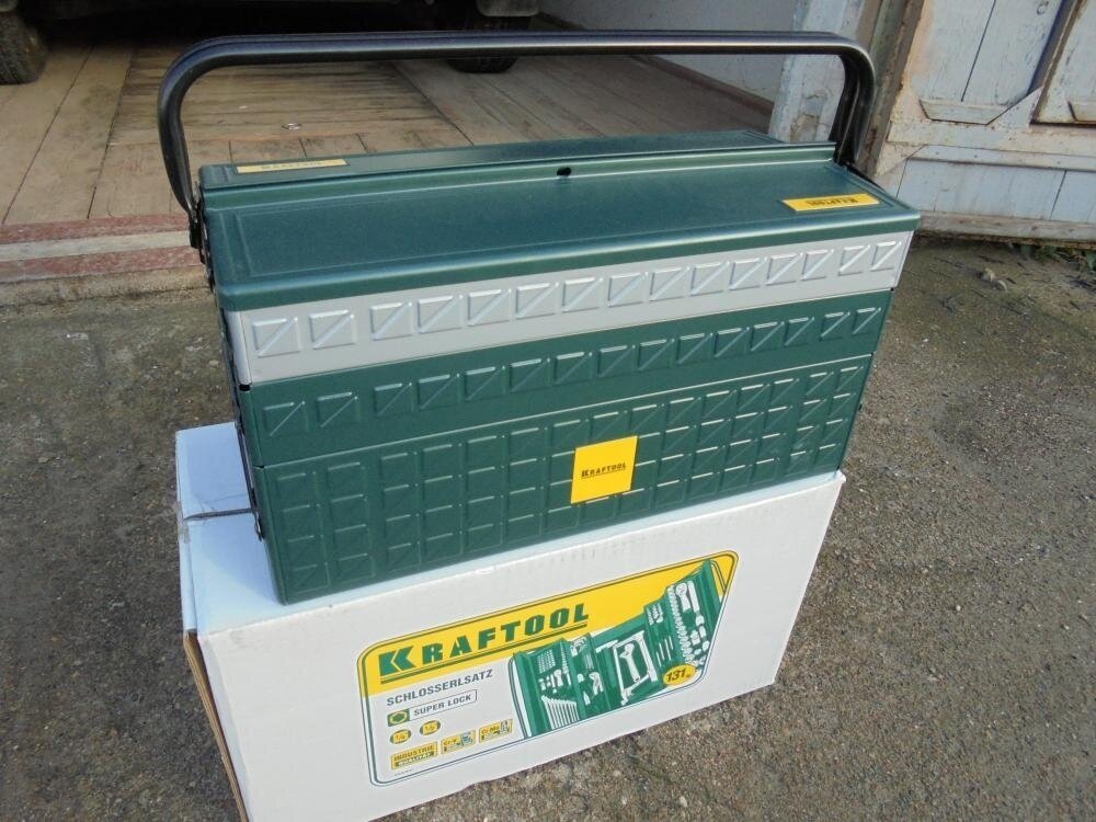 Набор инструментов KRAFTOOL предназначен для профессионального использования. Детали комплекта выполнены из инструментальной CrV стали. Удобные обрезиненные ручки не проскальзывают в мокрых или замасленных руках. Раскладной ящик с инструментом весит 15 кг.