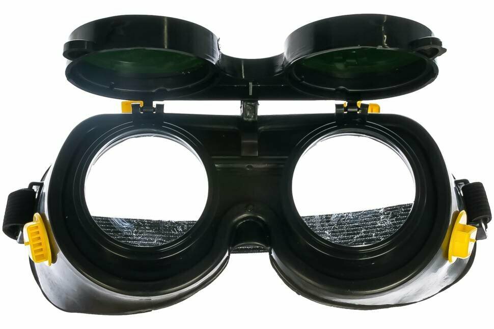 Затемненные очки Biber тов-069144 защищают глаза при газосварочных и строительных работах от пыли, краски, окалины и стружки. Поднимающийся затемненный щиток ограждает от яркого видимого света. Эластичная лента надежно фиксирует очки на голове.