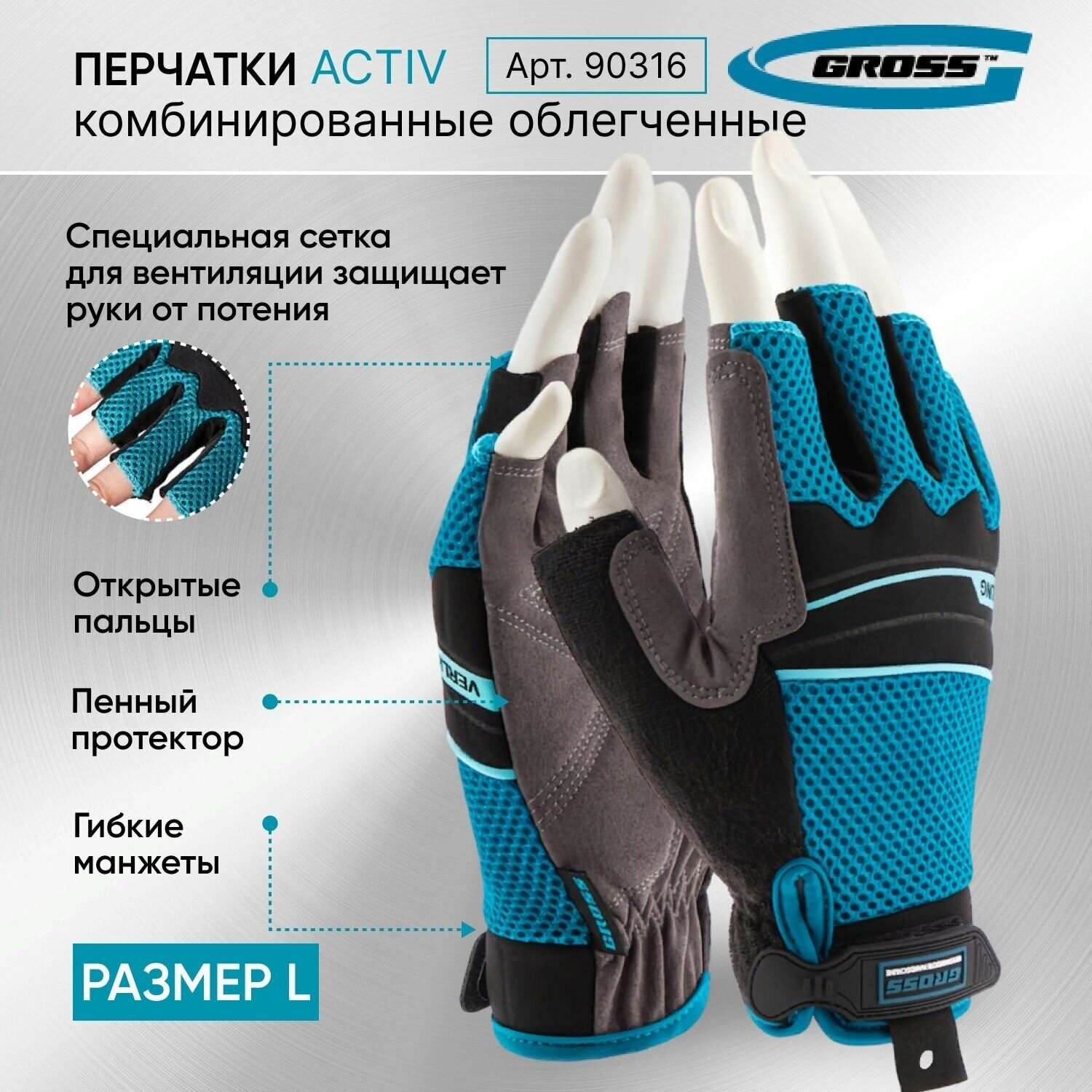 | Наименование модели | Перчатки Gross Aktiv комбинированные облегченные, открытые пальцы, L |