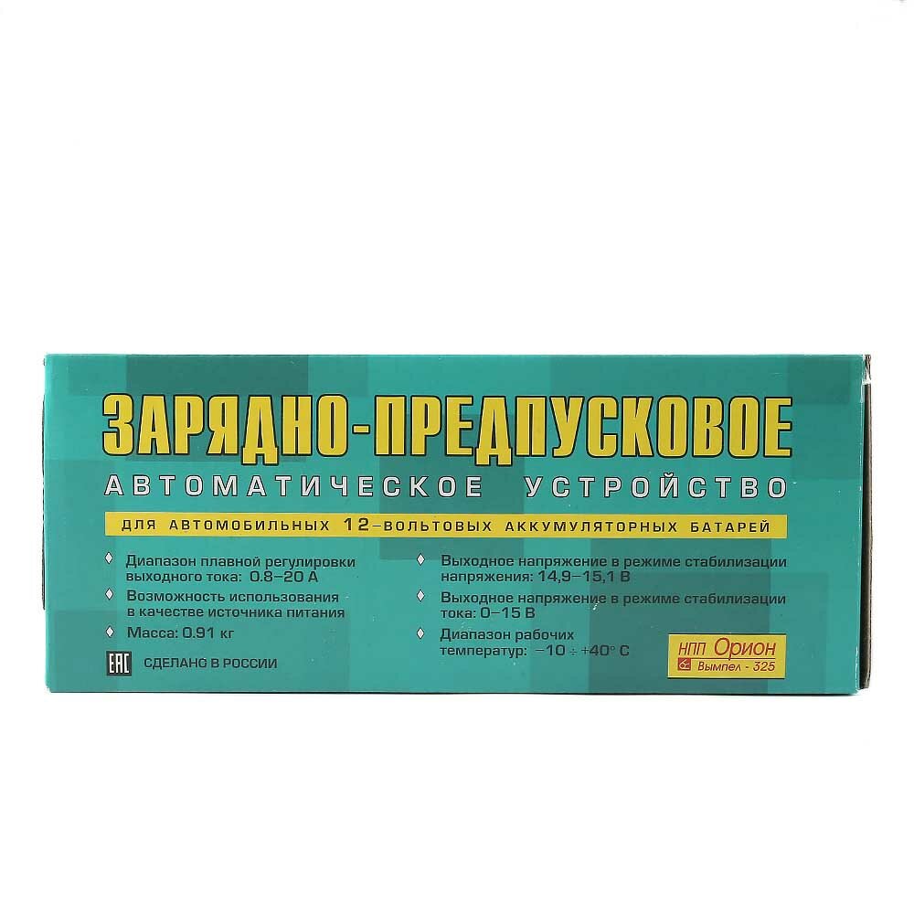 Зарядное устройство, 0-20А,12В Вымпел НПП Вымпел-325 2022 - устройство, которое позволяет заряжать современные 12 В аккумуляторные батареи. Прибор не требует отключения аккумуляторов от бортовой сети. Преимущества Возможность заряжать полностью разряженную аккумуляторную батарею Автоматическое включение вентилятора при повышении температуры Возможность использовать зарядное устройство в качестве предпускового для облегчения запуска двигателя Широкая сфера применения - питание автомобильной аппаратуры, электроинструментов, галогенных ламп и других приборов
