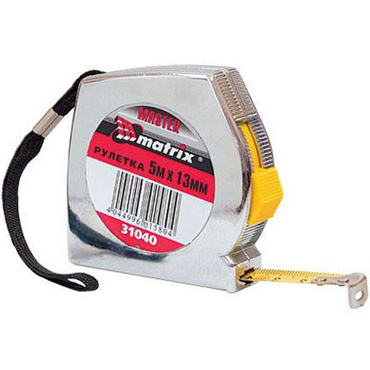 Рулетка Chrom, 5 м x 13 мм, хромированный корпус// Matrix