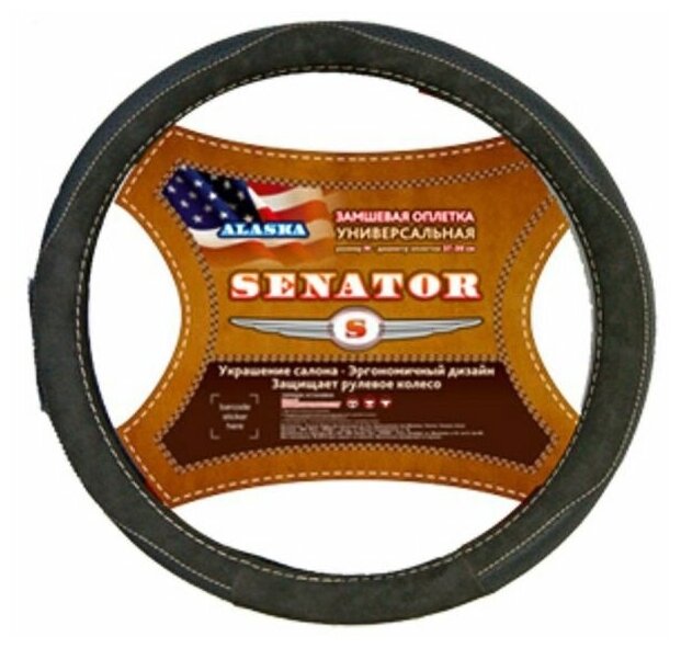 Оплетка на руль Senator Alaska выполнена из автомобильной замши с вставками из автомобильной перфокожи, на гладком эластичном ободе.