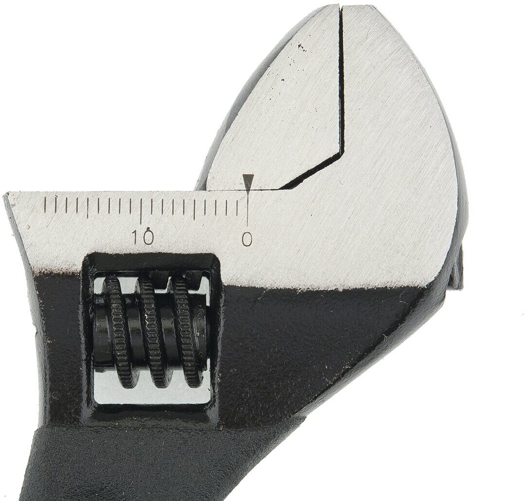 Ключ разводной изготовлен из углеродистой стали и подвергнут селективной закалке. Для разведения губок на точно заданное расстояние на неподвижной губке нанесена градуировка, а на подвижной – точечная риска. Встроенный в тело ключа червячновинтовой механизм защищен от коррозии. Рожковый разводной ключ предназначен для монтажа и демонтажа резьбовых соединений с широким диапазоном размеров крепежа.