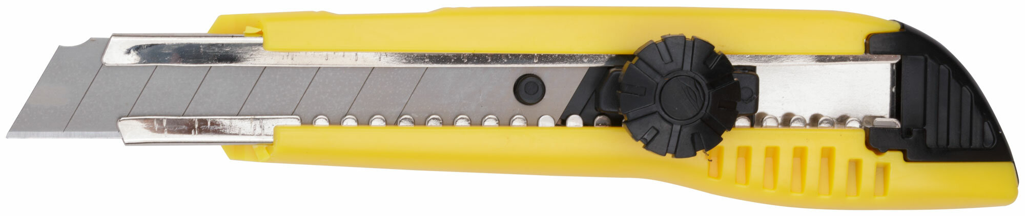 | Прочие особенности и свойства | «Отламывающиеся лезвие», с вращающимся пластиковым прижимом. Материал:пластиковый корпус, усиленный металлической направляющей, лезвие из инструментальной стали. |