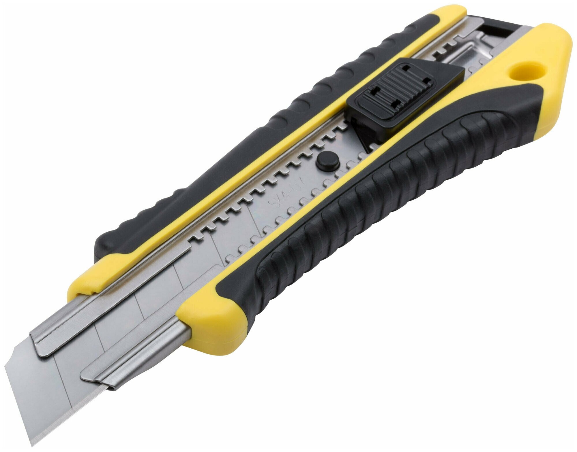 | Особенности | возможность замены лезвия; отламывающееся лезвие; противоскользящая рукоять; фиксация в открытом положении |