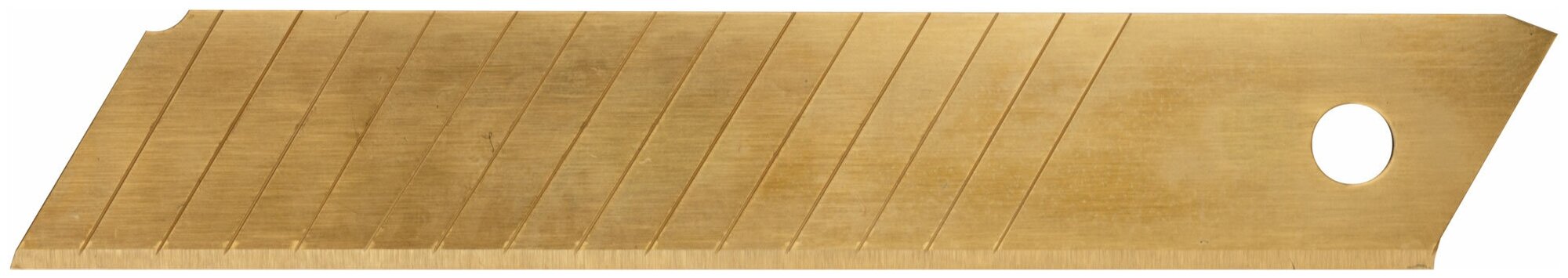 Предназначены для технических ножей. Сегментированные (15 сегментов). Материал: высокоуглеродистая сталь с нитрид титановым покрытием. Упаковка: пластиковый пенал в блистере.