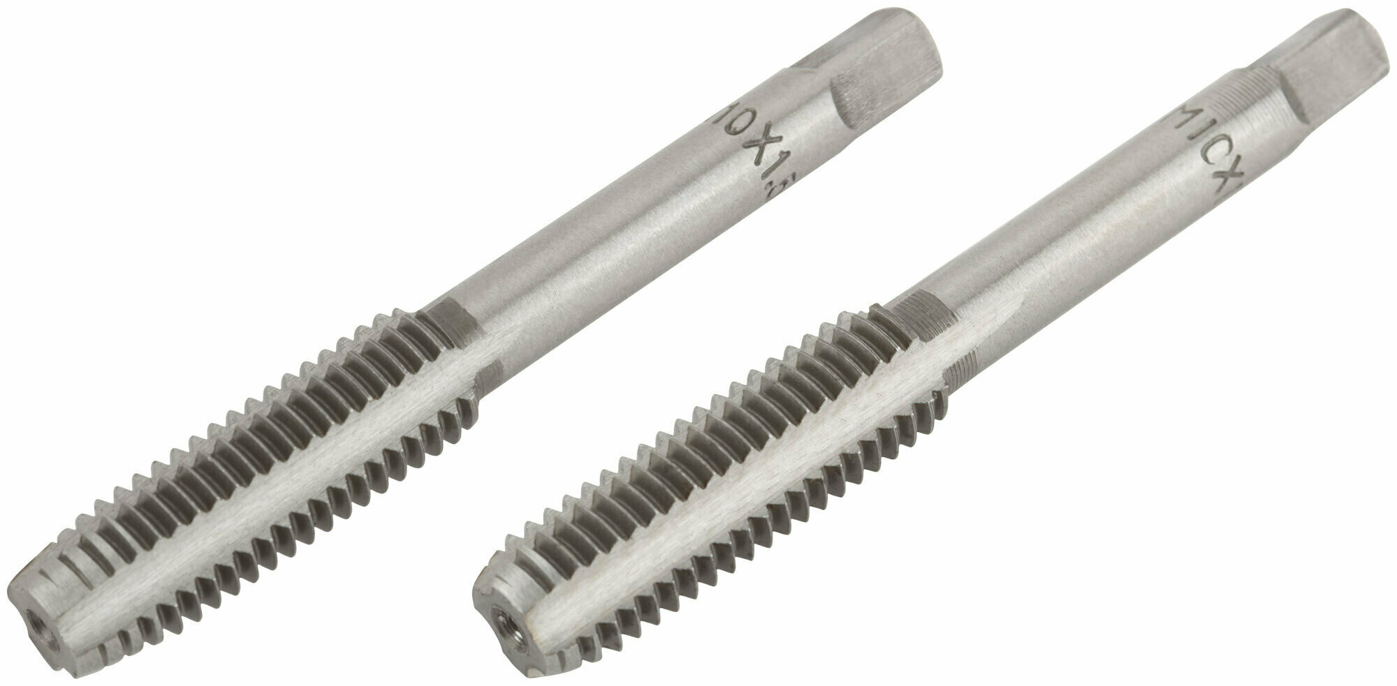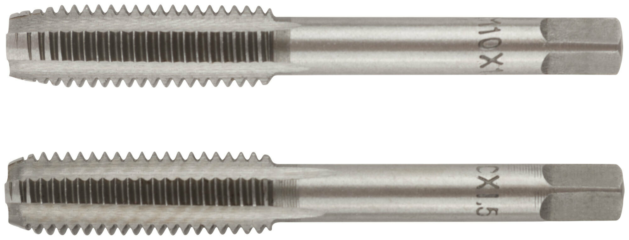 Служат для нарезания внутренней резьбы размером 10х1,5 мм в сквозных и глухих отверстиях. Набор из двух предметов, каждый из которых изготовлен из прочной легированной стали. Является удобным приспособлением, которое производит грубую и точную резьбу. Благодаря прочному материалу, изделие прослужит долго.