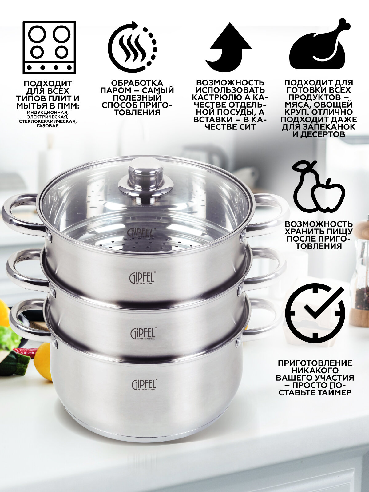 Пароварки, скороварки, гусятницы Gipfel »