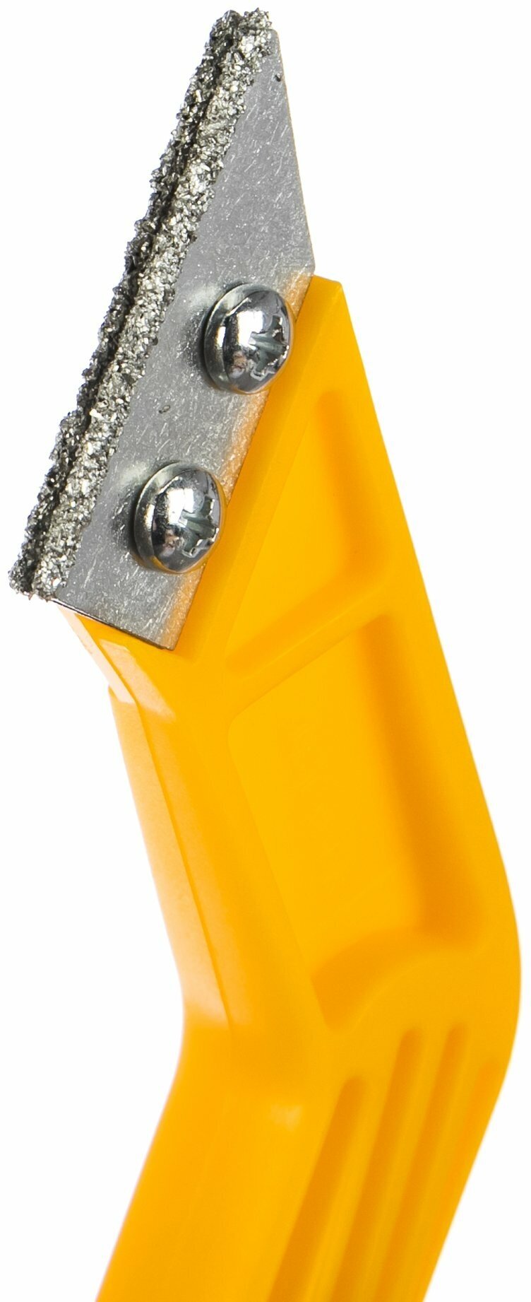 Скребок STAYER серии PROFESSIONAL - надежный и проверенный инструмент высокого качества. Применяется для зачистки швов уложенной кафельной плитки от излишков засохшего раствора, краски и различных загрязнений.ПреимуществаКарбид-вольфрамовое нанесение обеспечивает продолжительный срок службы.Легкая эргономичная пластмассовая ручка позволяет надежно держать скребок во время использования.2 лезвия.Возможность замены и добавления лезвий.ИспользованиеСкребок по кафелю предназначен для зачистки швов уложенной кафельной плитки от излишков засохшего раствора, краски и различных загрязнений.Параметры Гарантия: 6 Ширина, мм: 75 Ручка: Пластик Длина, мм: 200 Длина рабочей части, мм: 50 Кол-во лезвий, шт: 2 Модель: Брэнд: STAYER Артикул: