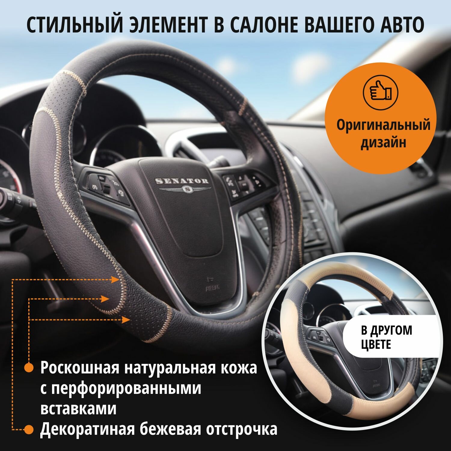 Аксессуары Senator OPLS0801 Оплетка на руль Senator Washington - стильный автомобильный аксессуар. Высококачественная премиальная кожа в сочетании с перфорированной кожей с зигзагообразной прострочкой усиливают визуальную привлекательность. Благодаря специальному крою оплетка легко устанавливается на рулевое колесо машины и защищает его от потертостей и возникновения загрязнений.