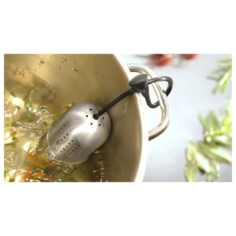 Идеальное приспособление для добавления специй в супы, тушенное мясо, глинтвейн. Силиконовый корд позволяет надежно закрепить сито на кастрюле любого размера.Можно мыть в посудомоечной машине.