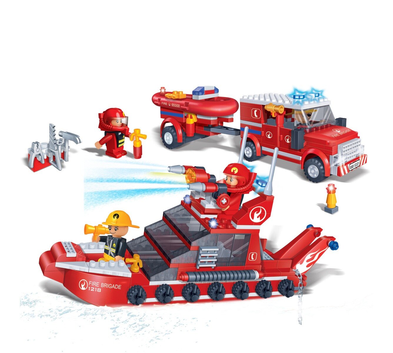 - Lego совместимый конструктор BanBao, Пожарная команда Fire, Машинка, катер, вертолет 1223 А-129