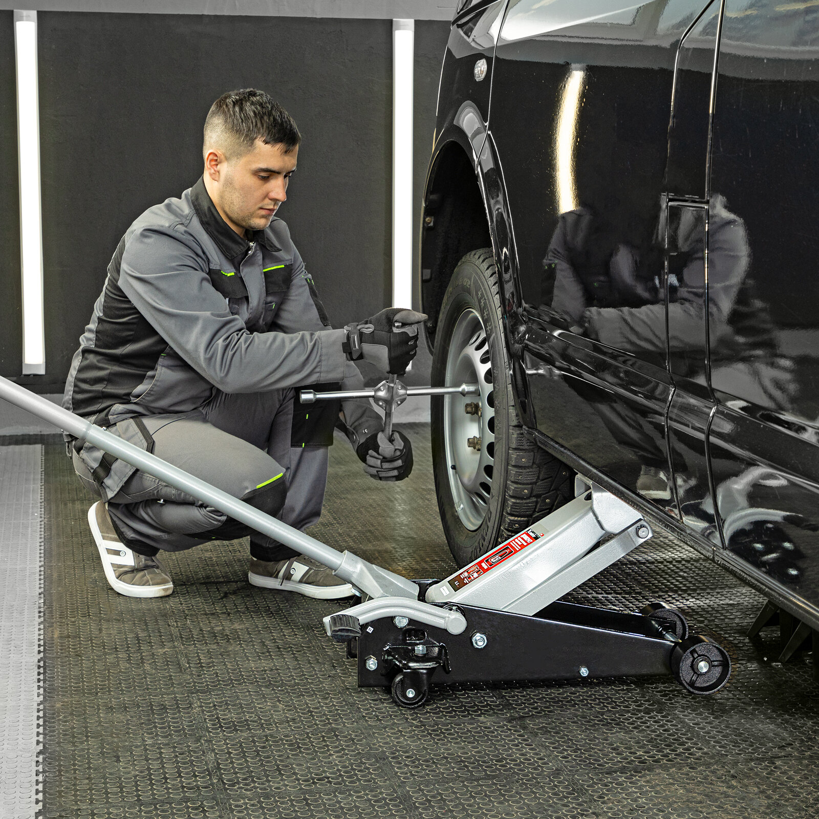 Подкатной гидравлический домкрат Matrix с педалью, h подъема 145-490 мм, - полупрофессиональное гаражное оборудование, способное поднимать груз массой до 3,5 т. Высота подхвата 145 мм позволяет использовать домкрат для автомашин со стандартным клиренсом. Высота подъема составляет 490 мм. Домкрат будет полезен как в автомастерской, так и в частном гараже. ПреимуществаУсиленная конструкция обеспечивает надежность оборудования. Антикоррозийное покрытие защищает домкрат от ржавчины. Клапан защиты от перегрузки предотвращает возникновение избыточного давления, предохраняя домкрат от поломки. Педаль ускоренного подъема упрощает использование домкрата.