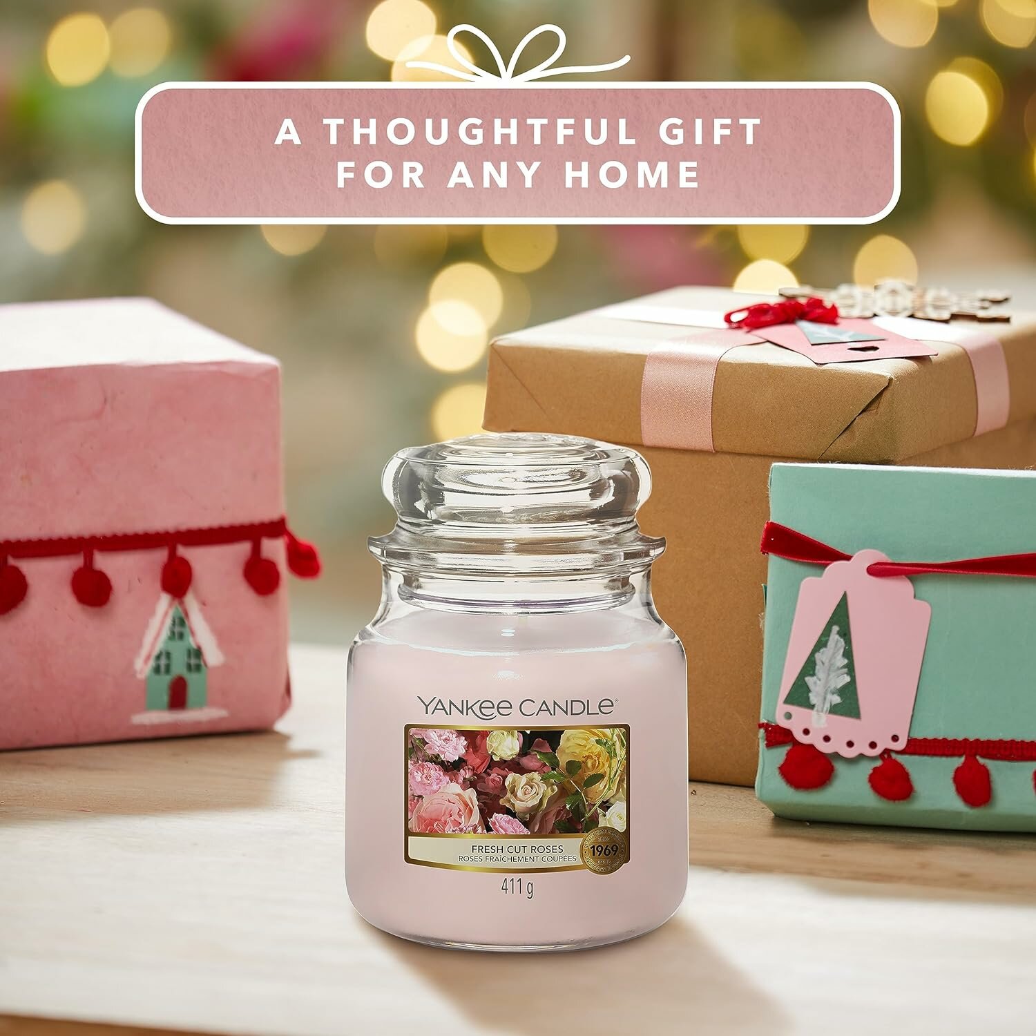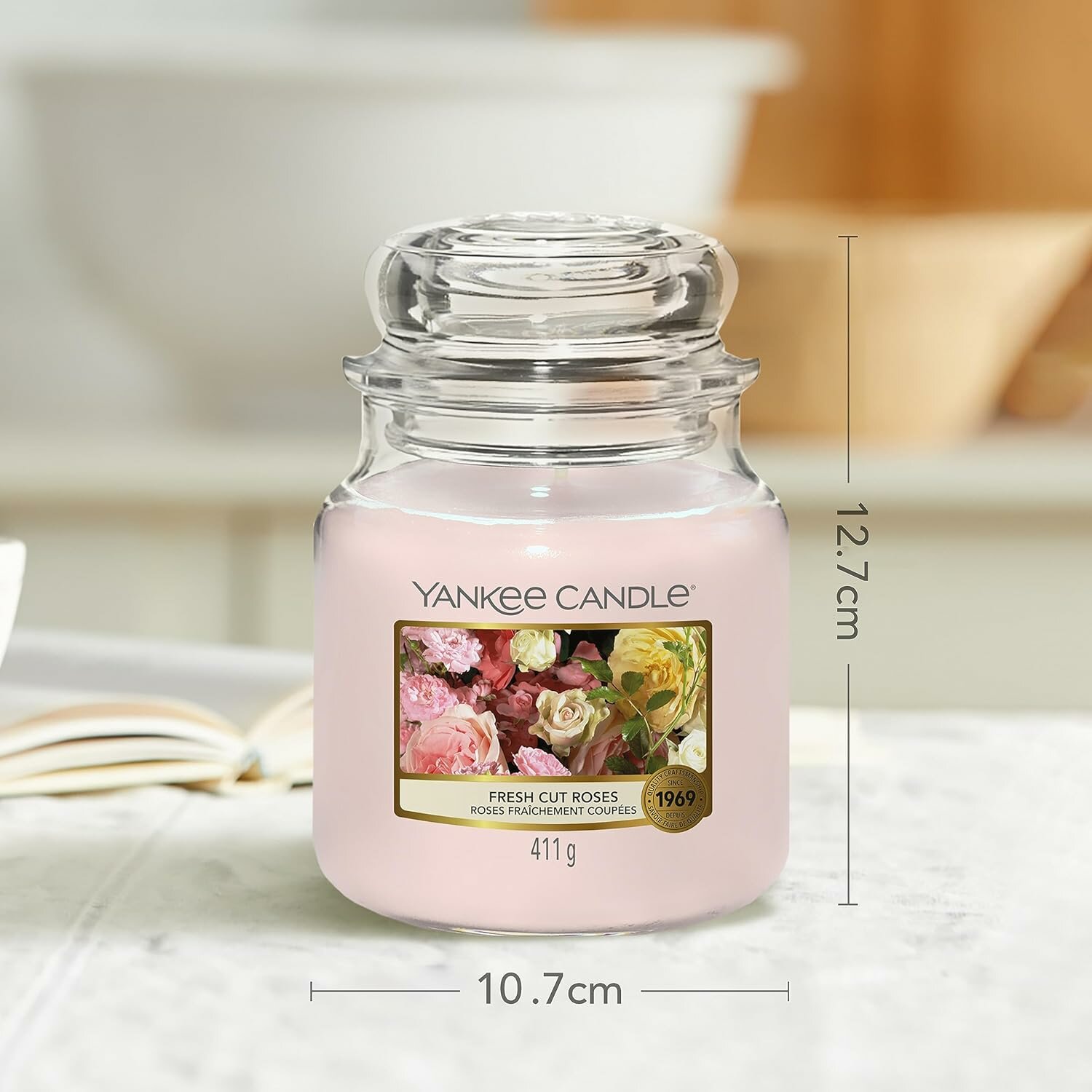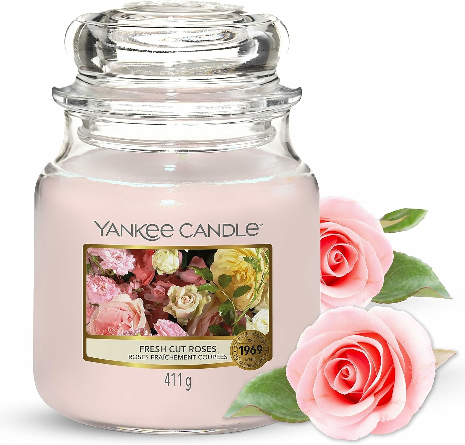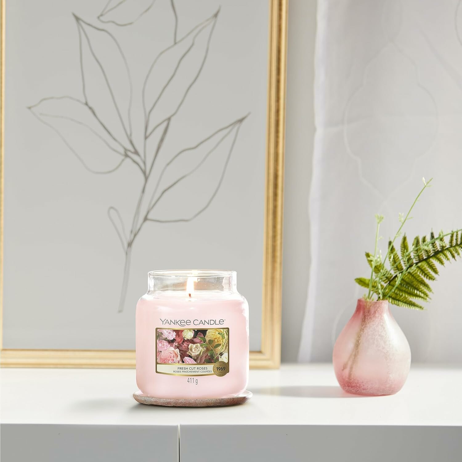 Свеча средняя в стеклянной банке Свежесрезанные розы Fresh Cut Roses 411 гр / 65-90 часов YANKEE CANDLE