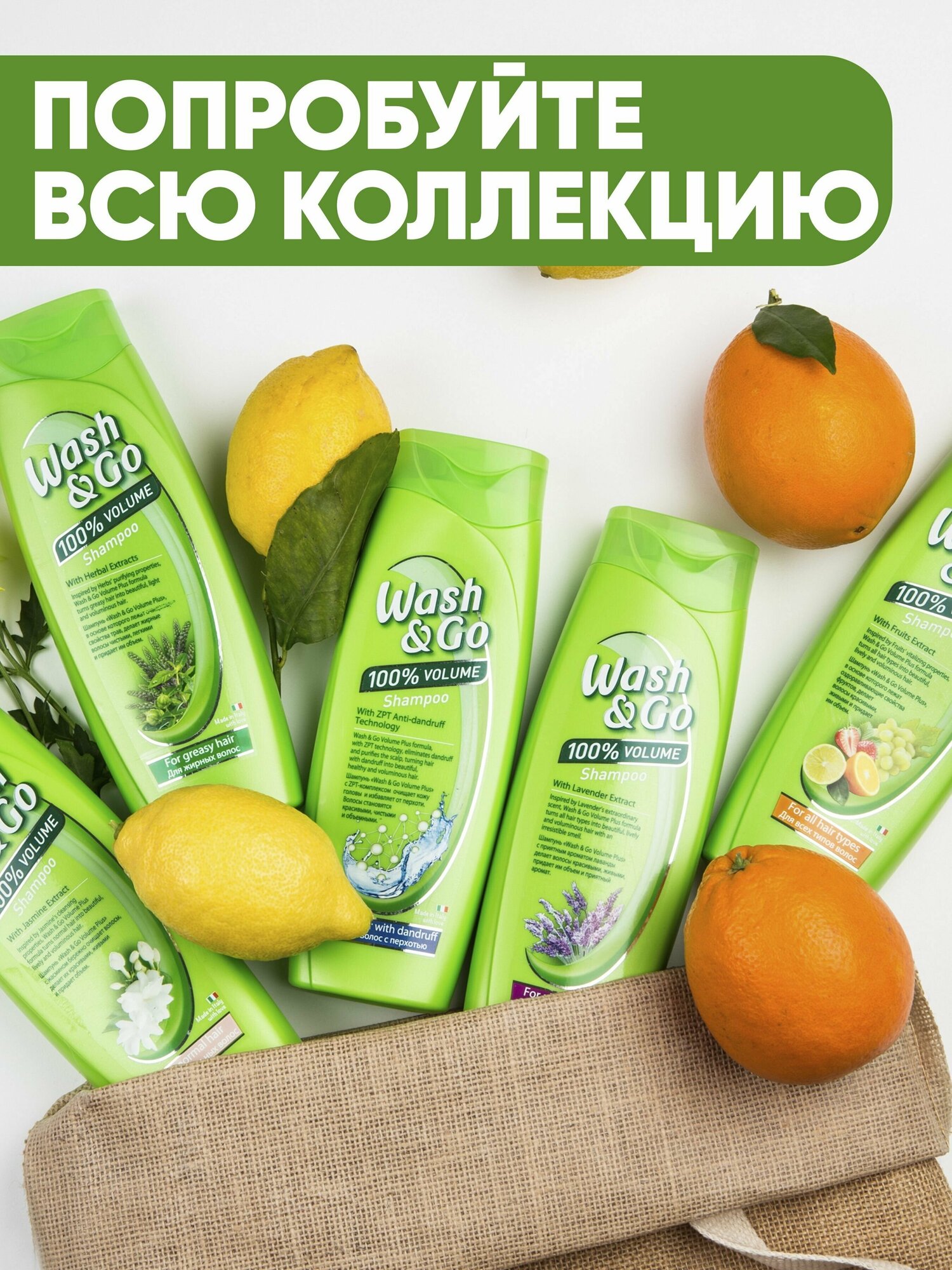 Шампунь Wash & Go с любовью ухаживает за вашими волосами, делая их невероятно живыми и объемными. Его особая формула нежно очищает волосы и кожу головы, обеспечивая ощущение легкости и объем. Обогащенный экстрактом жасмина, известным своими очищающими и увлажняющими свойствами, этот шампунь - идеальный выбор для нормальных волос. Легендарный шампунь Wash&Go вернулся на Российский рынок! В 1997 году этот превосходный шампунь появился в России и мгновенно стал неотъемлемым символом успеха и утонченного вкуса целого поколения. За прошедшие 20 лет уникальная формула Wash&Go непрерывно совершенствовалась. Теперь вся линейка шампуней Wash&Go разрабатывается и производится в Италии. Специалисты итальянской лаборатории создали уникальную коллекцию шампуней, сочетая новейшие технологии и итальянские традиции. Благодаря новой экспресс-формуле с экстрактами трав и фруктов, шампуни Wash&Go оказывают "5 эффектов за 5 минут", очищая и бережно ухаживая за волосами за считанные минуты. Для каждого типа волос подобраны индивидуальные 5 эффектов. 1. Деликатное очищение. 2. Легкое питание. 3. Бережное расчесывание. 4. Дополнительный объем и 5 Индивидуальный ингридиент. Ваши волосы станут красивыми всего за 5 минут!