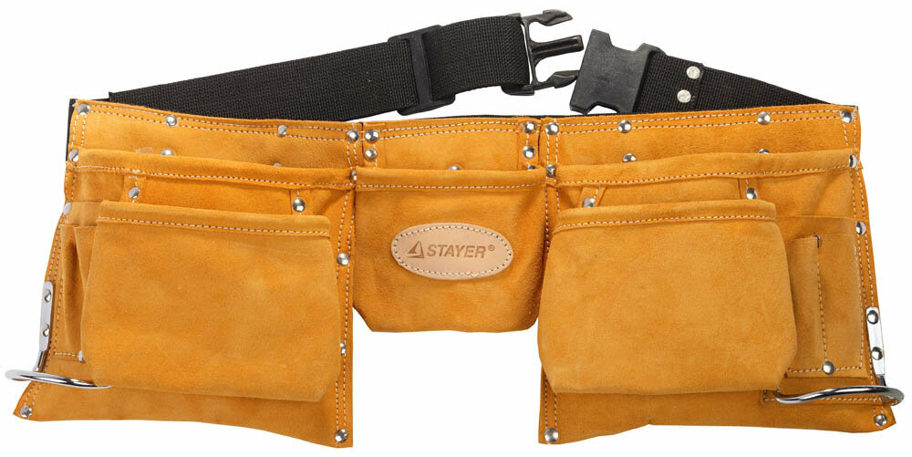 Пояс для инструмента Stayer предназначается для хранения необходимых аксессуаров в работе. Данное изделие пригодится и домашнему мастеру, и профессионалу, высокое качество делает вещь неплохим подарком для мужчины.Удобство рабочего процессаПри осуществлении монтажных, строительных и иных работ приходится пользоваться различным оборудованием. Кожаный пояс для инструментов STAYER PROFESSIONAL позволит держать под рукой все необходимое:есть прочные и вместительные карманы;за скобы можно подвесить различные приборы и технику;материал выдерживает значительный вес и не порвется.Сумку легко стирать, она не деформируется со временем, высокое качество пошива позволяет гарантировать долговечность.Качественные аксессуары для мастеровПояс для инструмента Stayer изготовлен из натуральной кожи, благодаря чему отличается прочностью. Плотный материал устойчив к проколам и иным внешним повреждениям.