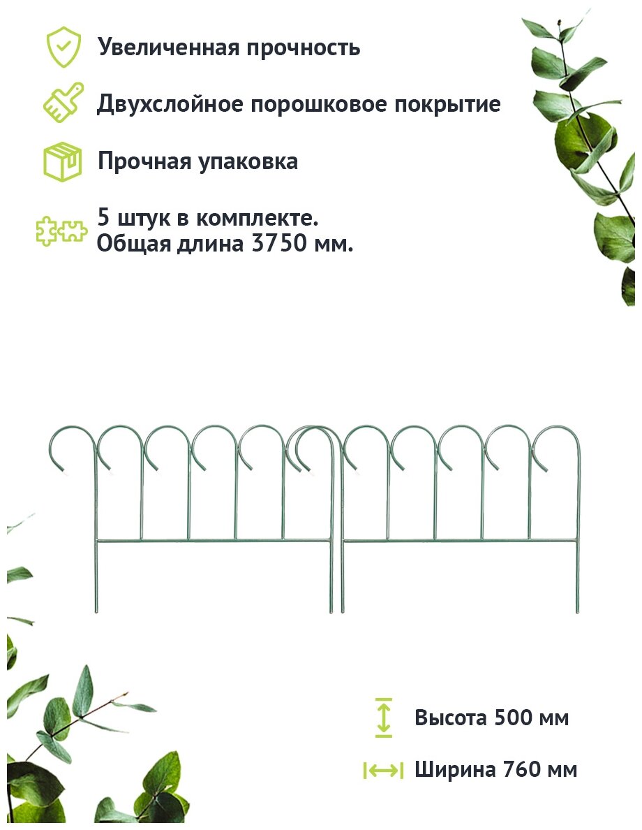 Заборчик предназначен для декоративного оформления приусадебного участка. Технология покраски — порошковое напыление. Заборчики применяются для украшения дачных участков, палисадников, сквериков и садов. Подчеркивая стиль ландшафтного дизайна, заборчики создают впечатление ухоженности, аккуратности и добавляют некоторый шарм Вашему саду. В комплекте 5 секций. Тип бордюр садовыйМатериал металлВысота 500 мм