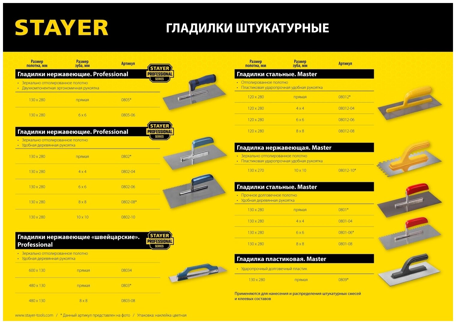 Гладилка STAYER "PROFI" 130х480мм с деревянной ручкой для нанесения и распределения по большим поверхностям штукатурных смесей и клеевых растворов. Полотно из нержавеющей стали.