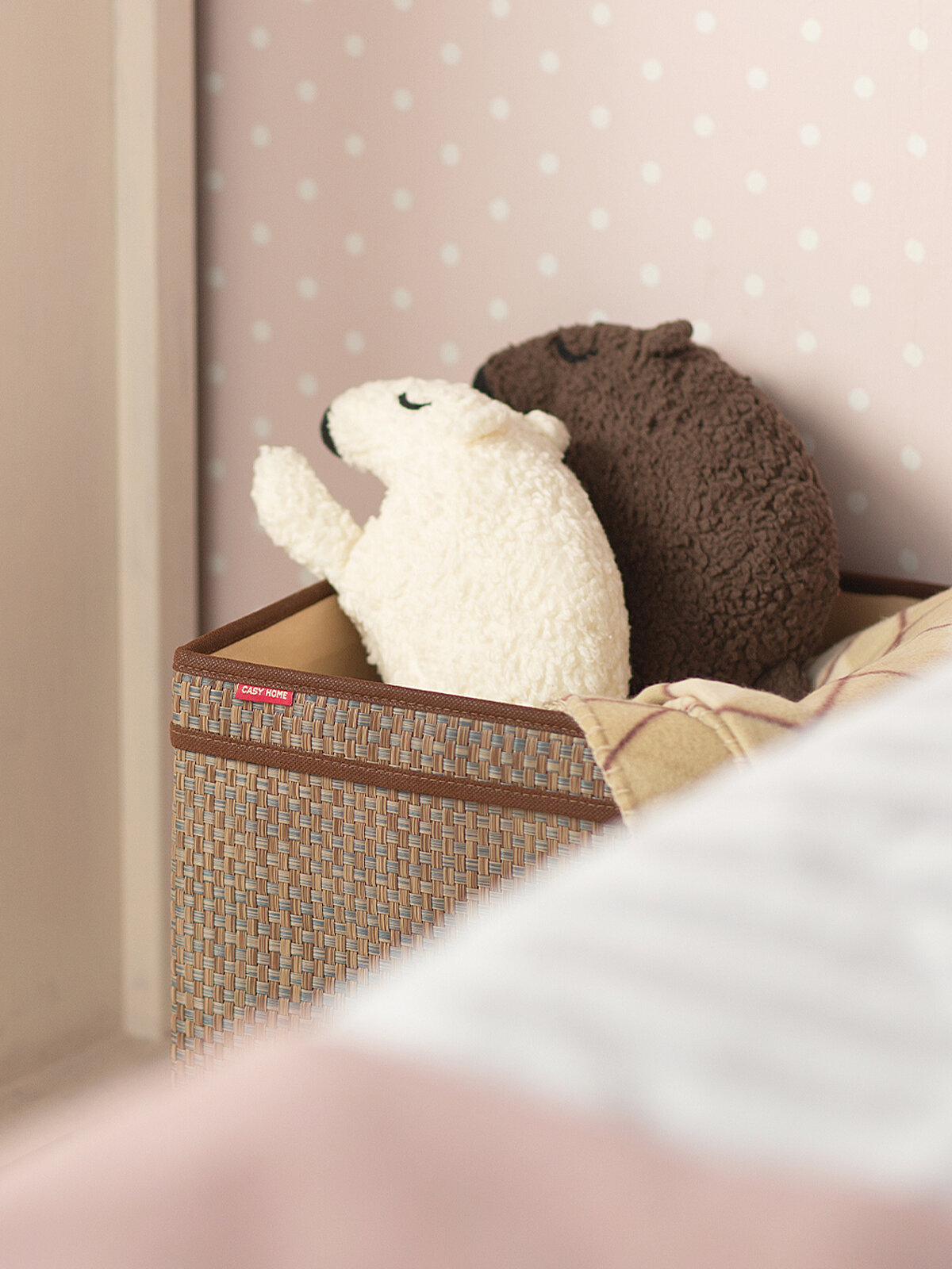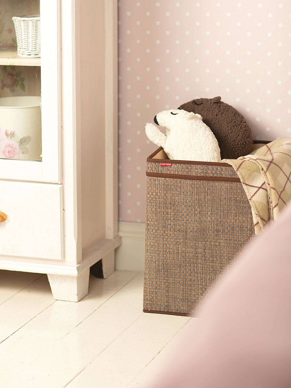Корзина для одежды, аксессуаров, игрушек и других домашних вещей. Прочный каркас из ячеистого полипропилена. Корзина легко собирается и разбирается. Внешняя сторона из текстилена, а подкладка - спанбонд. Эти современные материалы не впитывают влагу, отлично пропускают воздух и при этом защищают от пыли. Сверху расположены удобные ручки для переноски.